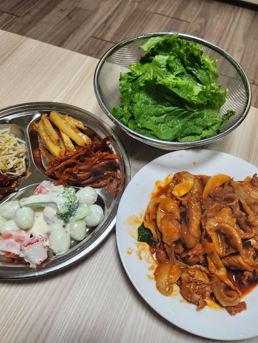 홈플러스 세일 해서 사온 앞다리살로 만들었당! 밑반찬은 시장~ ㅋㅋ 열흘에 한번씩 가다보니 이모님이 알아보신다😳