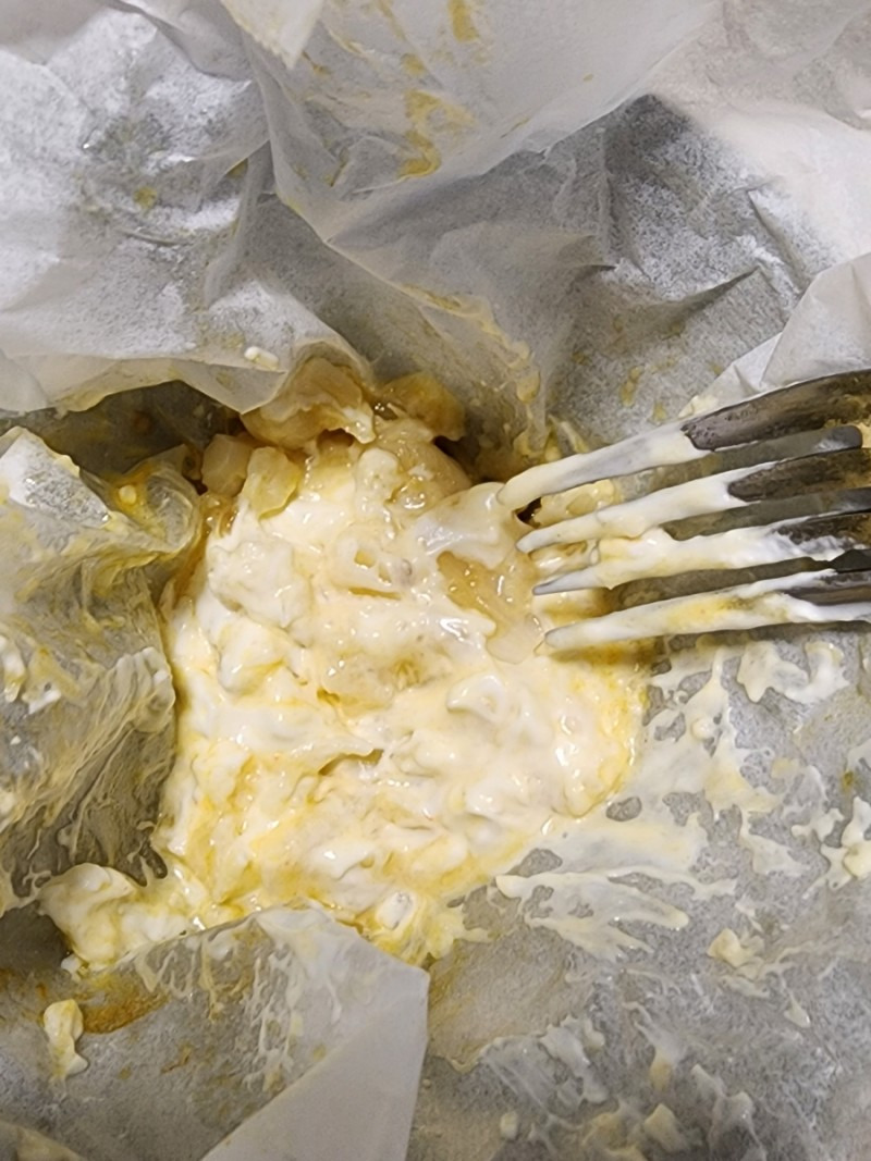 2. 익은 마늘과 토마토를 빼서 토마토는 빼고 마늘을 으깨서 적당히 크림치즈랑 섞어줌