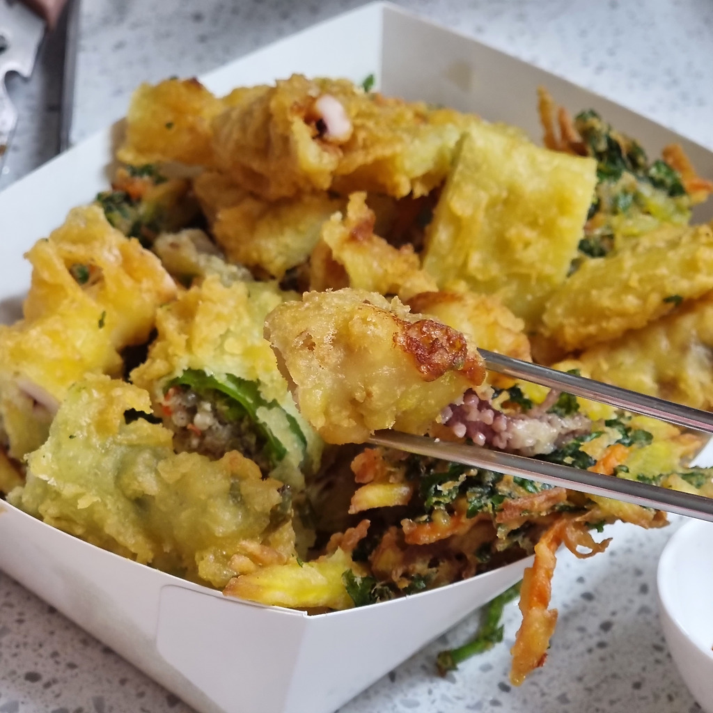 오징어튀김 고추튀김 고구마튀김 야채튀김