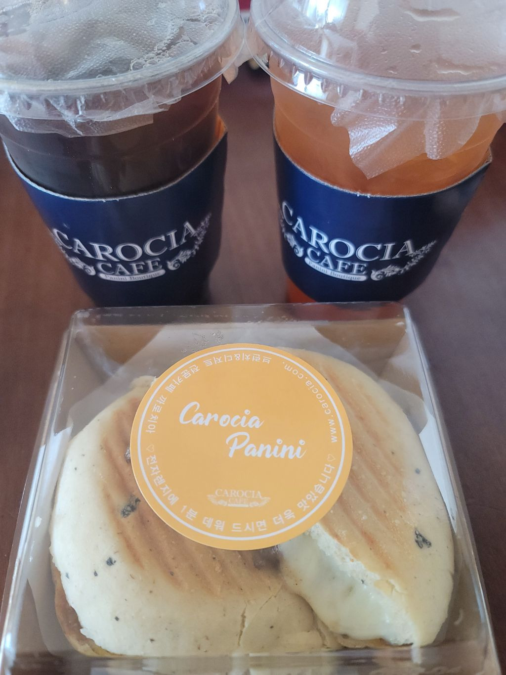 모짜렐라 그득 들어간 파니니 쫀맛이에요!! 에이드는 자몽에이드 ㅎㅎ