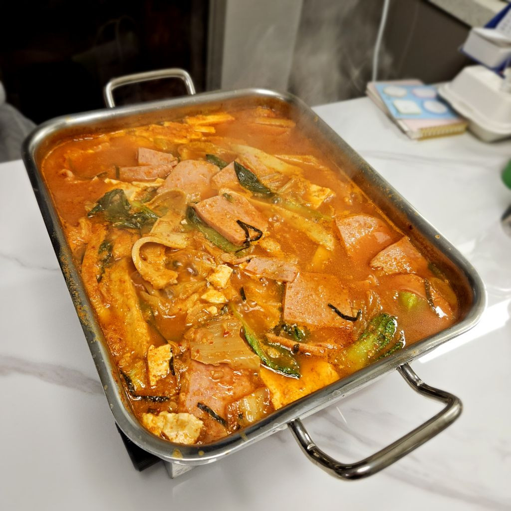 집 부대찌개에 빕이랑 라면사리 먹었어용