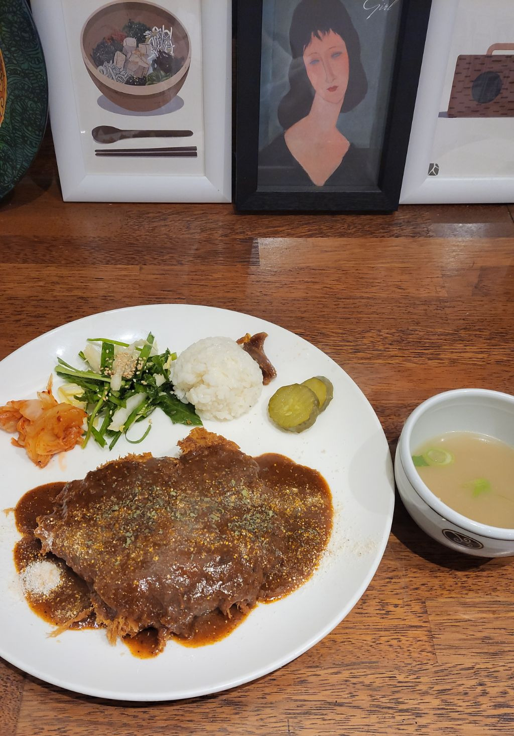 클스마스때도 열어주셔서 너무 감사합니다(꾸벅🙇♂️) 식전 야채가 풍부히 들어간 스프하며 돈까스 가니쉬로 나온 양배추+양파+부추 샐러드 진짜 입맛 최대로 끌러올려주는 맛에 돈까스 소오스는 한국입맛 패치 제대로 되어서 느끼+칼칼+감칠맛 그 잡채 였습니다👍