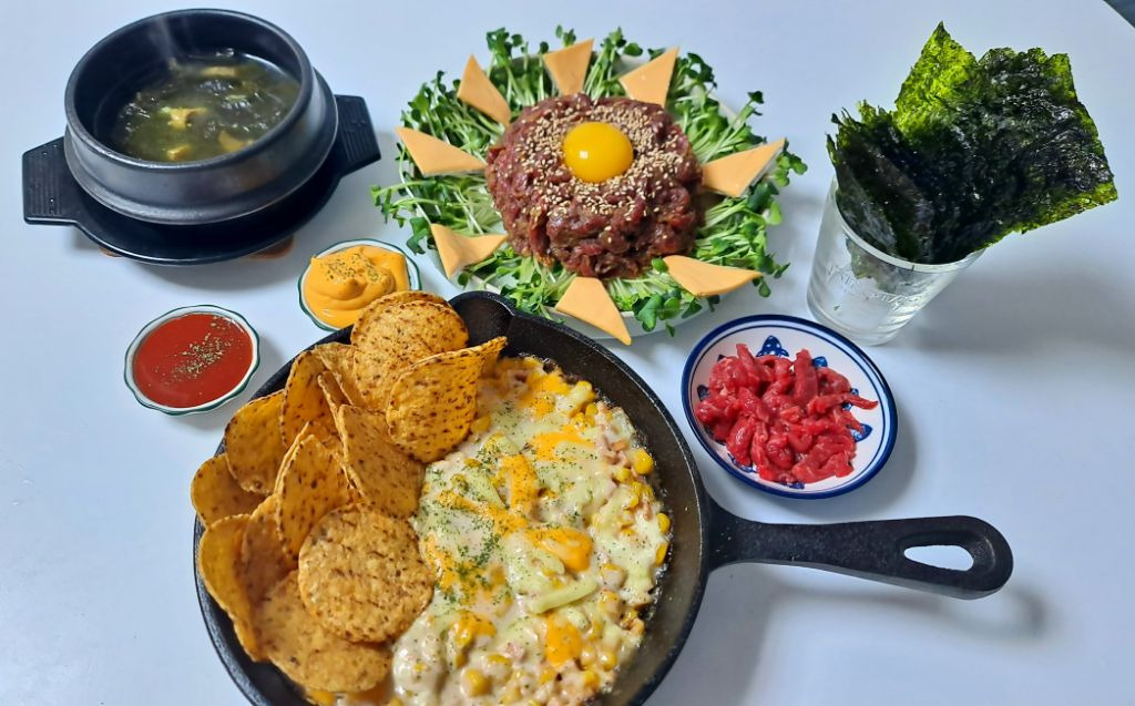육회, 나쵸치즈, 미역국 직접 만들었어요