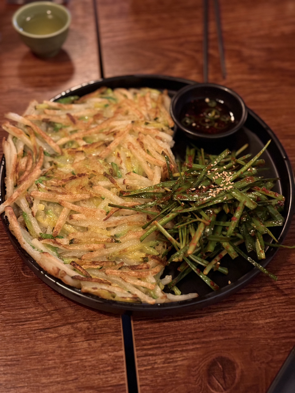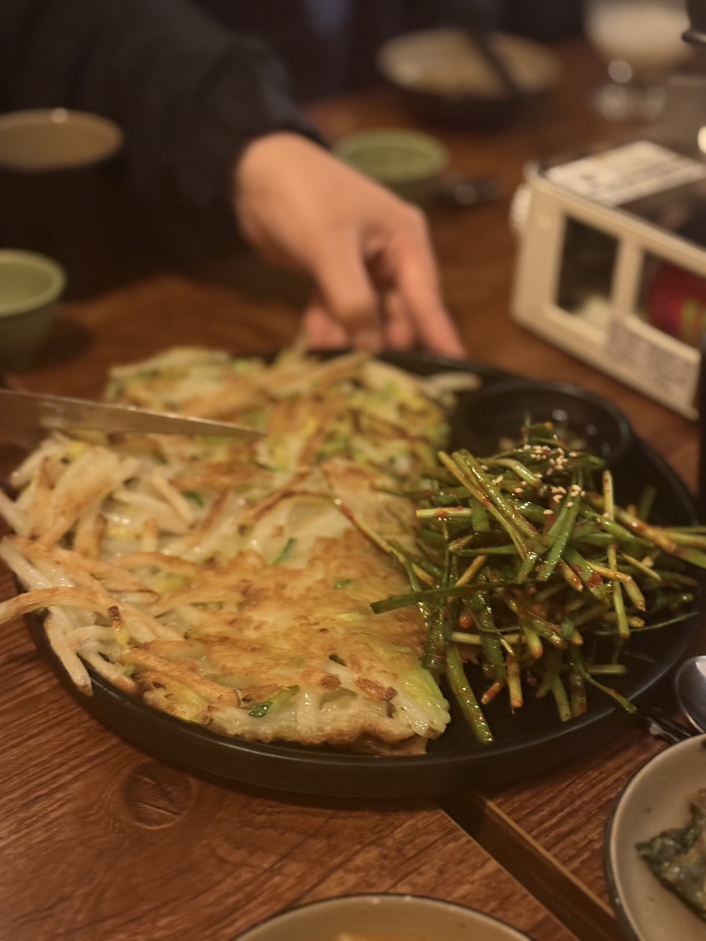 감자 애호박전에 부추 올려 먹는