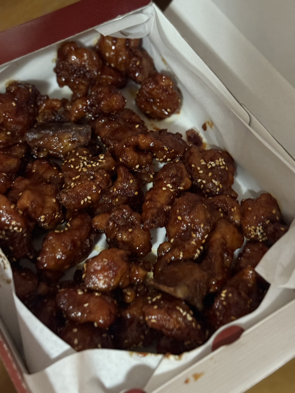 진짜 전통 강정 먹는 듯함. 다만 스타일 때문에 닭고기의 그런 촉촉함과 풍성함은 느끼기 힘들지만 과자먹듯이 먹어짐.