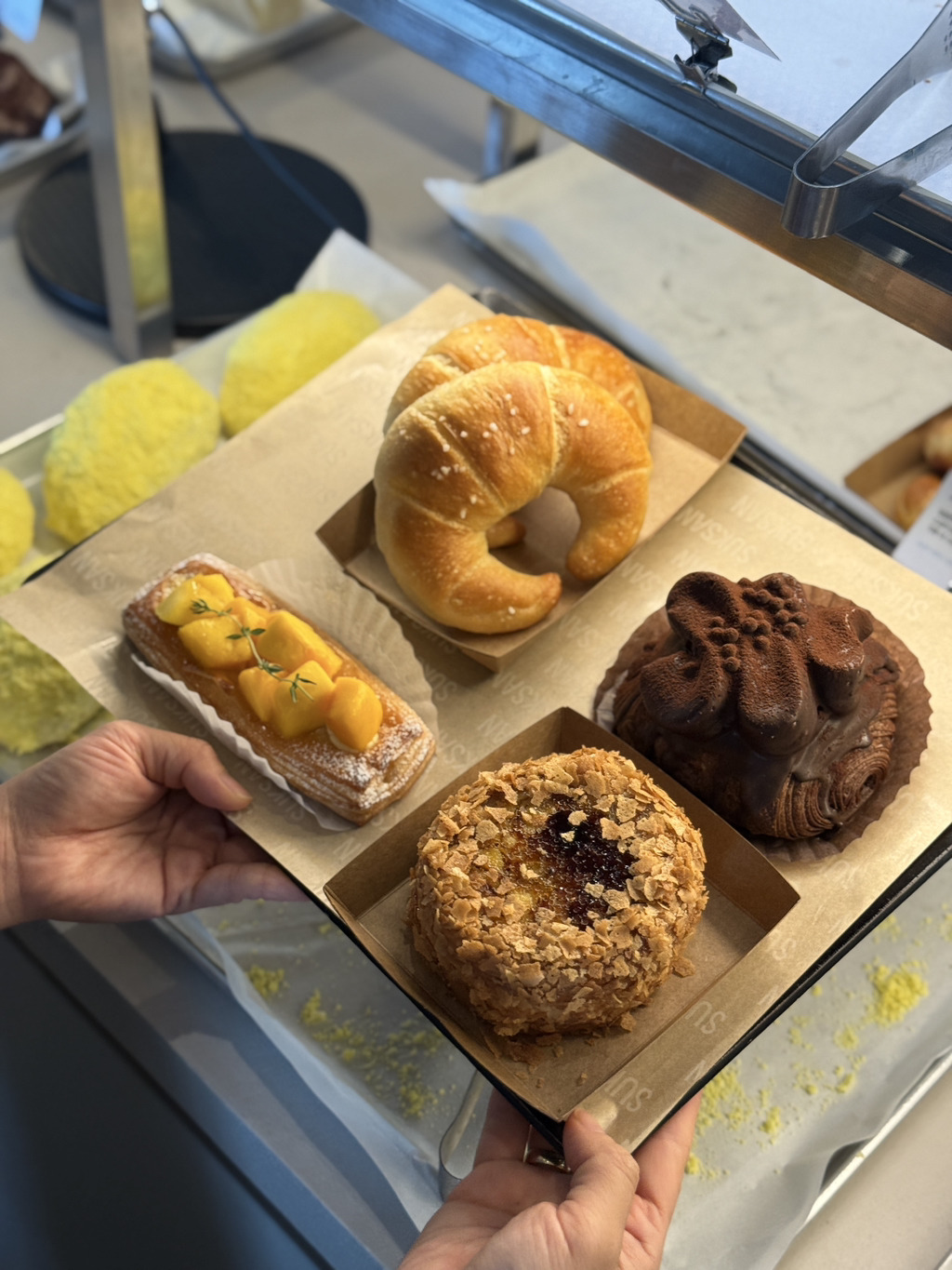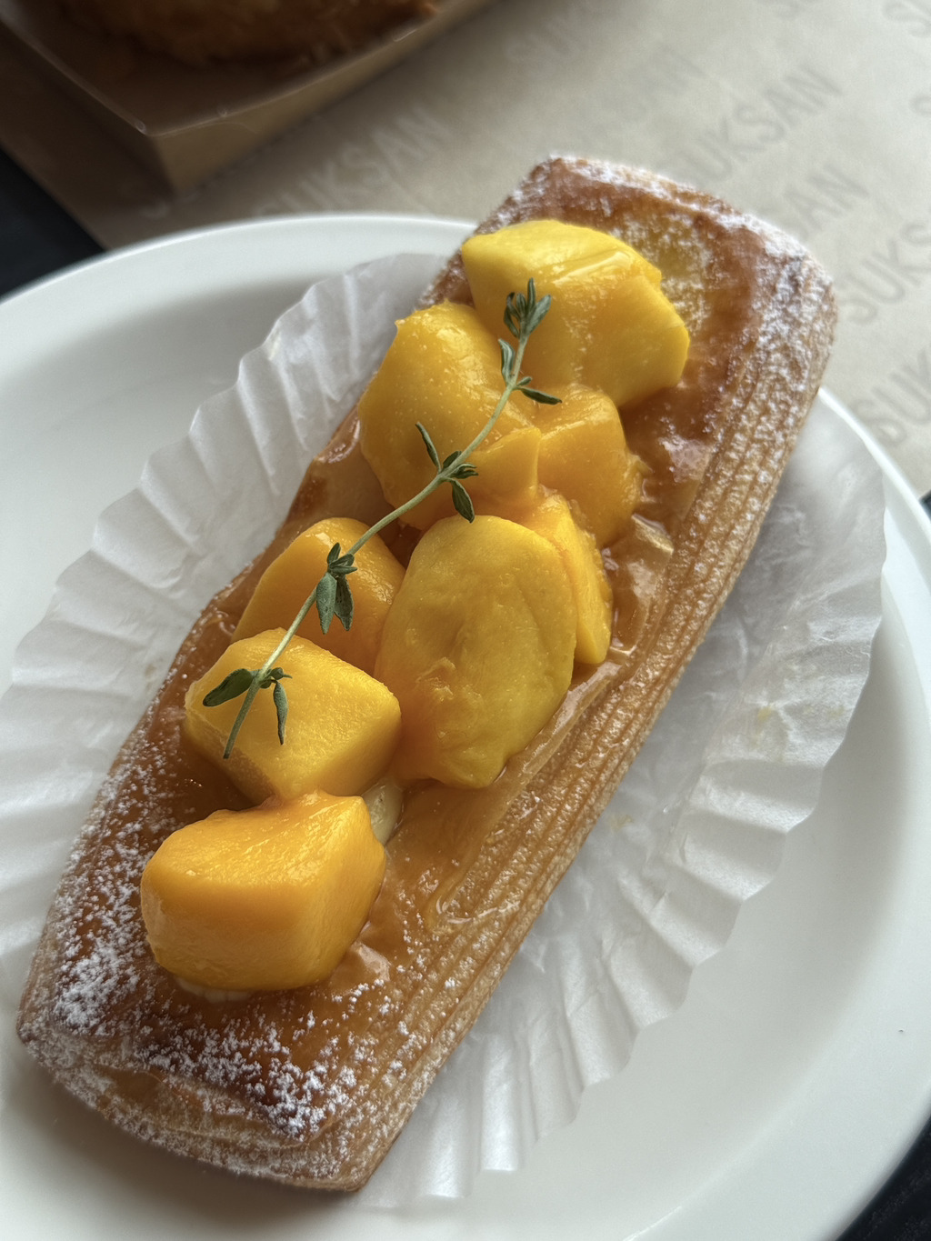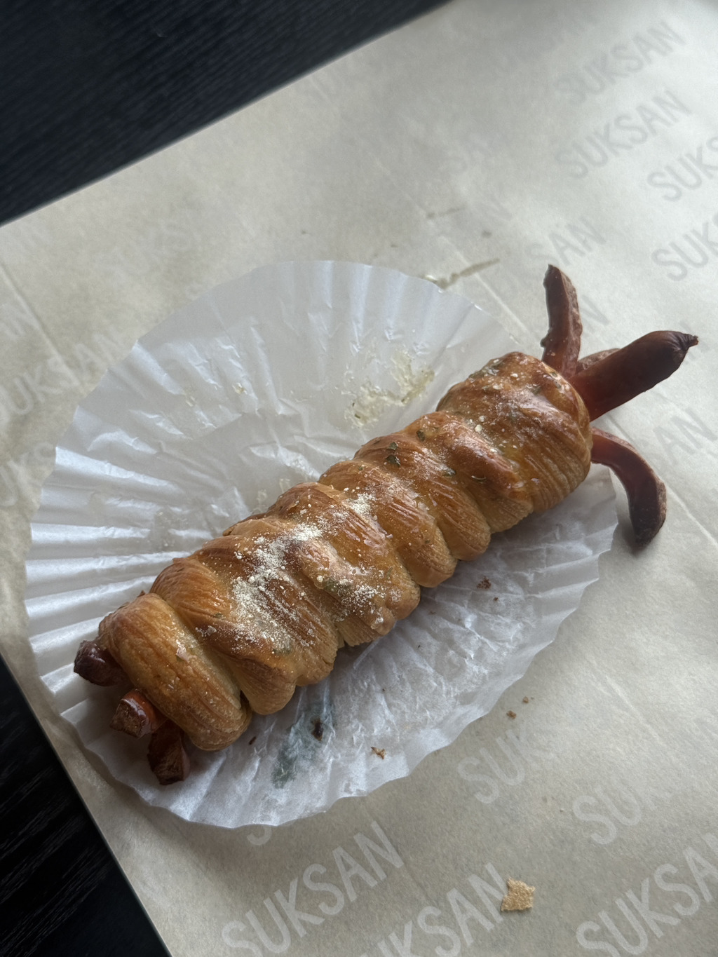목화솜빵. 이거 맛있다. 하얀 빵피 안에 찹쌀떡에 한겹 들어가 있고, 가운데 크림도 맛있고. 시그니쳐라고 샀는데 먹자마자 왜 시그니쳐인 줄 알 거 같은 말. 코롬방제과 가면 이건 꼭 담아야함.