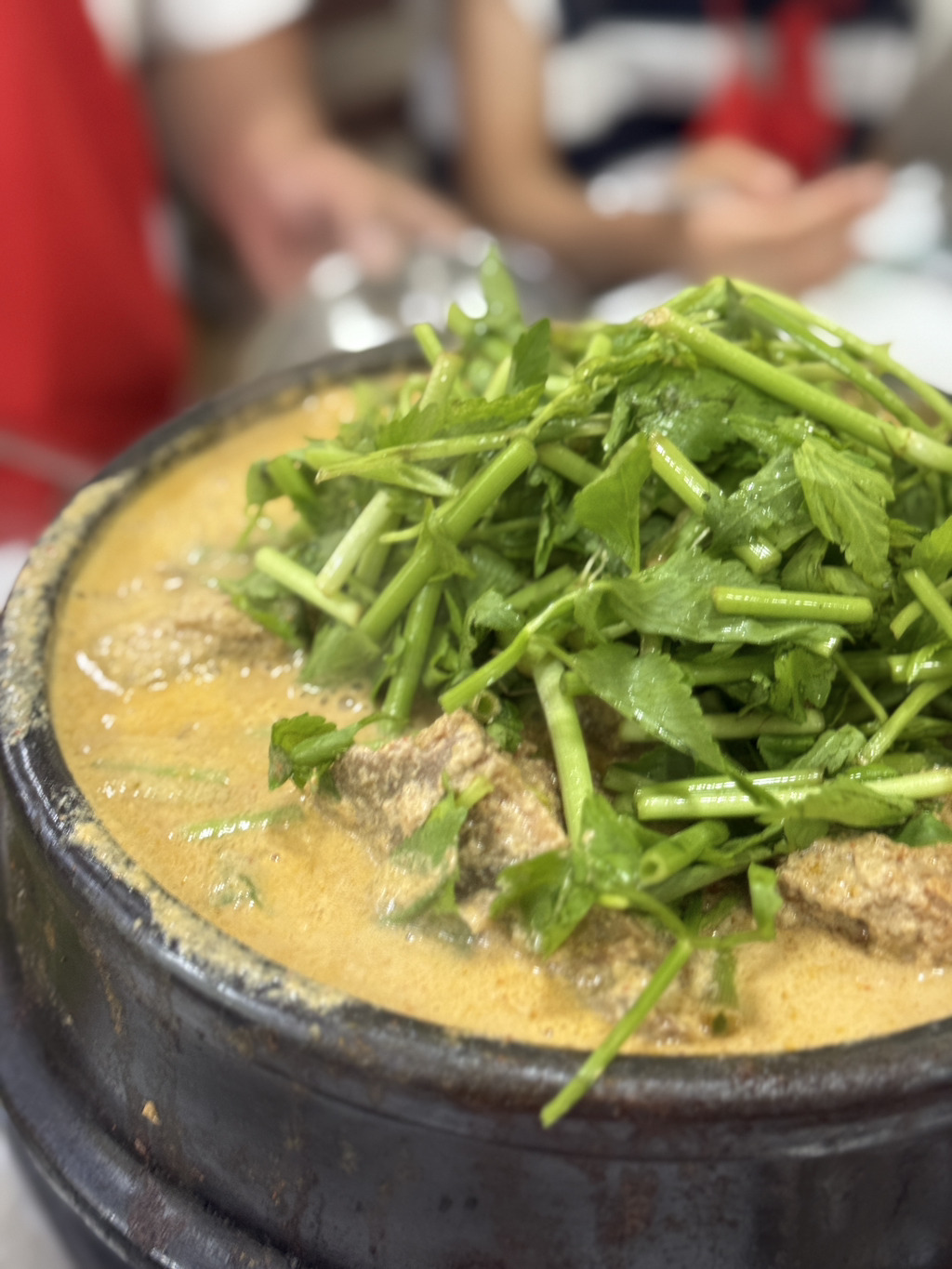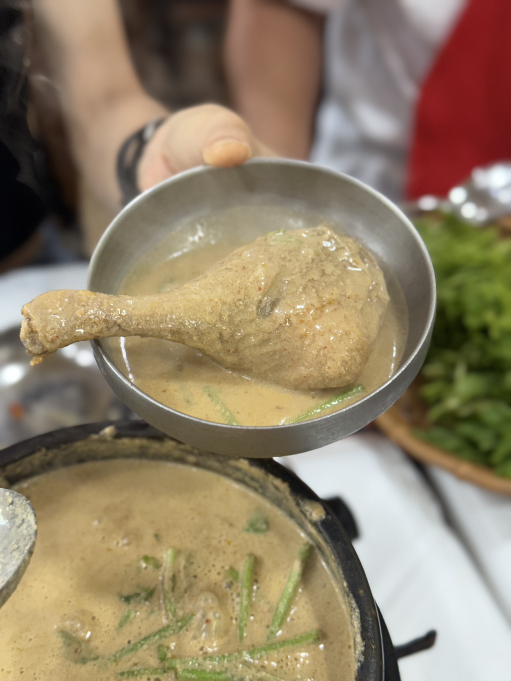 맛은 뭐랄까? 내가 생각했던 오리탕보다는 구수한 콩비지탕 같은? 걸쭉하고 진국인 국물이 일품이고 그 육수에 적셔진 미나리가 매력적. 저렇게 많은 미나리가 나오지만 거의 다 먹게 된다고. 정작 오리탕의 오리고기는 마치 토종닭처럼 애들이 잘 발골이 되지 않고 살도 단단해서 몇 개 먹기도 전에 이미 국물과 미나리를 먹다가 지쳐버렸다는 사실. 포장비 받고 먹다가 포장도 가능하니 개이득. 육수는 참고로 한 번 무료 리필된다. 한 마리 기준으오 성인 4명까지 충분히 가능하다.