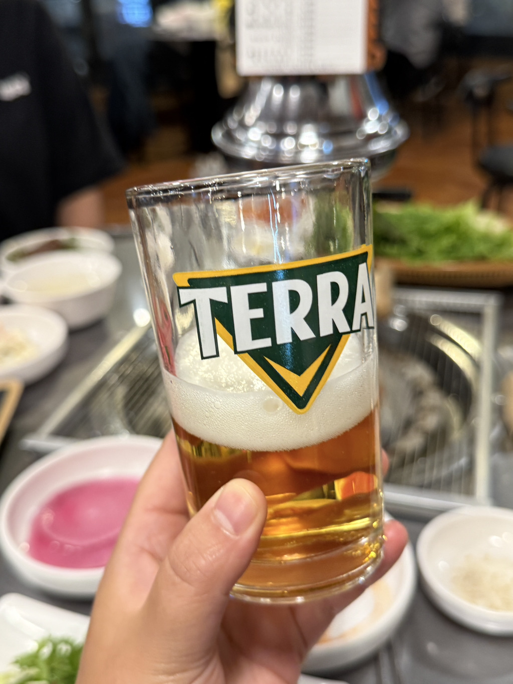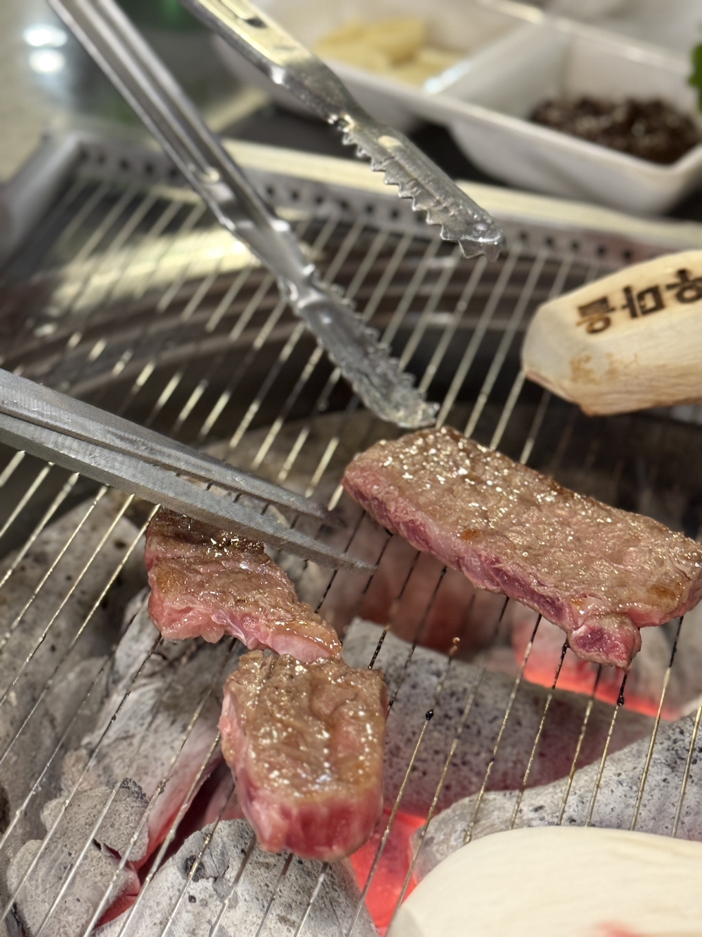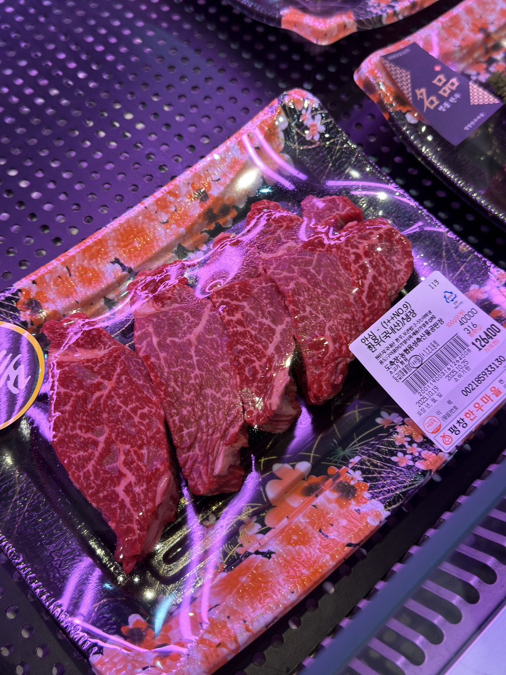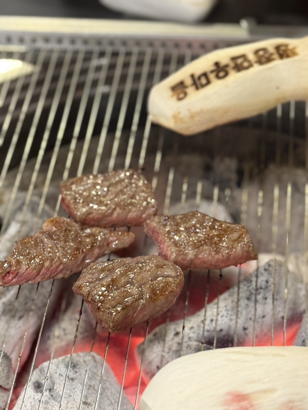 도착하자마자 바로 고기부터 골랐다. 정육식당이라서 고가 결제랑 식장 결제가 따로다. 친구가 고기 끈(?)이 긴 친구라서 믿고 따라갔다. 우리가 고른 건 등심, 살치살, 업진살. 조합이 미쳤다. 한 우물만 파는 장인정신 같은 선택이었다. 고기를 한 점 입에 넣었는데 그냥 ‘아…’ 소리가 절로 나온다. 정말 고기가 살살 녹는다는 표현이 괜히 있는 게 아니었다. 씹기도 전에 없어져 버리는 그 부드러움 때문에 술도 미친 듯이 들어간다. 고기가 맛있으니까 술이 달고, 술이 달아서 고기가 또 더 맛있고… 행복의 무한 루프에 빠졌다.