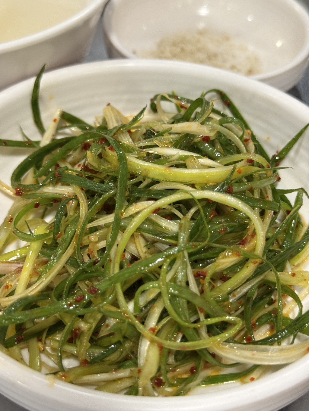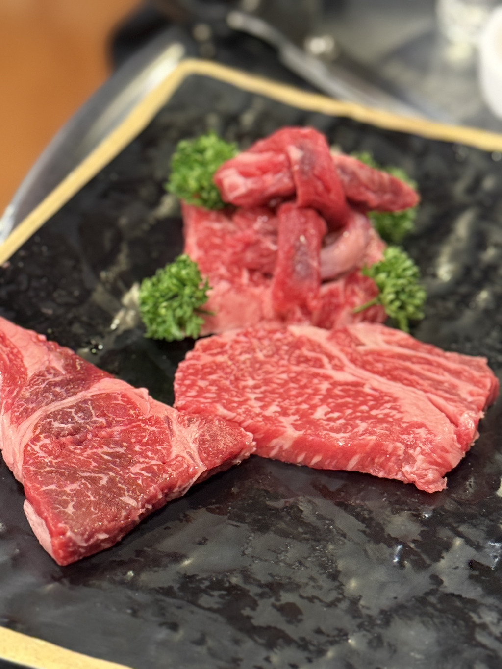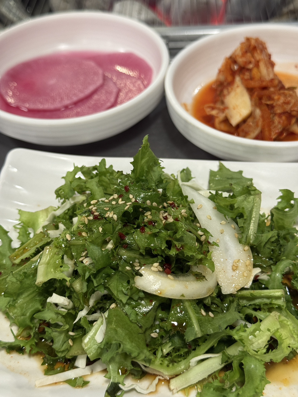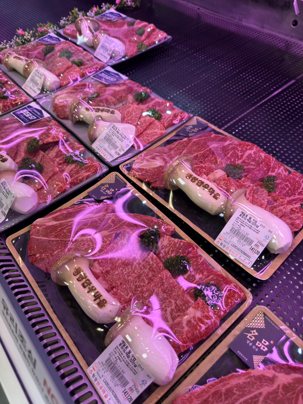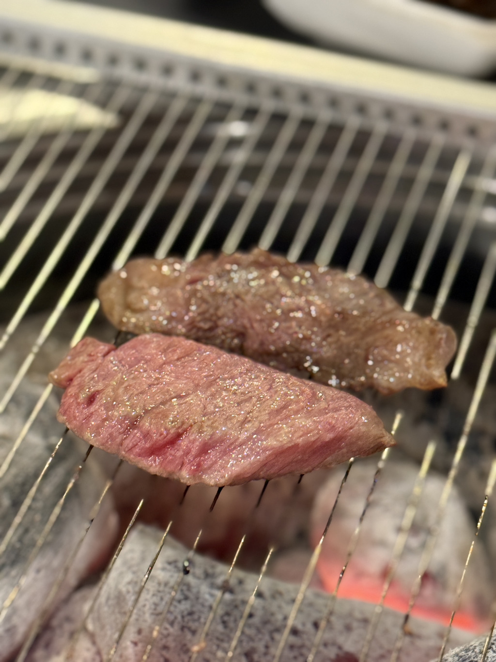 도착하자마자 바로 고기부터 골랐다. 정육식당이라서 고가 결제랑 식장 결제가 따로다. 친구가 고기 끈(?)이 긴 친구라서 믿고 따라갔다. 우리가 고른 건 등심, 살치살, 업진살. 조합이 미쳤다. 한 우물만 파는 장인정신 같은 선택이었다. 고기를 한 점 입에 넣었는데 그냥 ‘아…’ 소리가 절로 나온다. 정말 고기가 살살 녹는다는 표현이 괜히 있는 게 아니었다. 씹기도 전에 없어져 버리는 그 부드러움 때문에 술도 미친 듯이 들어간다. 고기가 맛있으니까 술이 달고, 술이 달아서 고기가 또 더 맛있고… 행복의 무한 루프에 빠졌다.