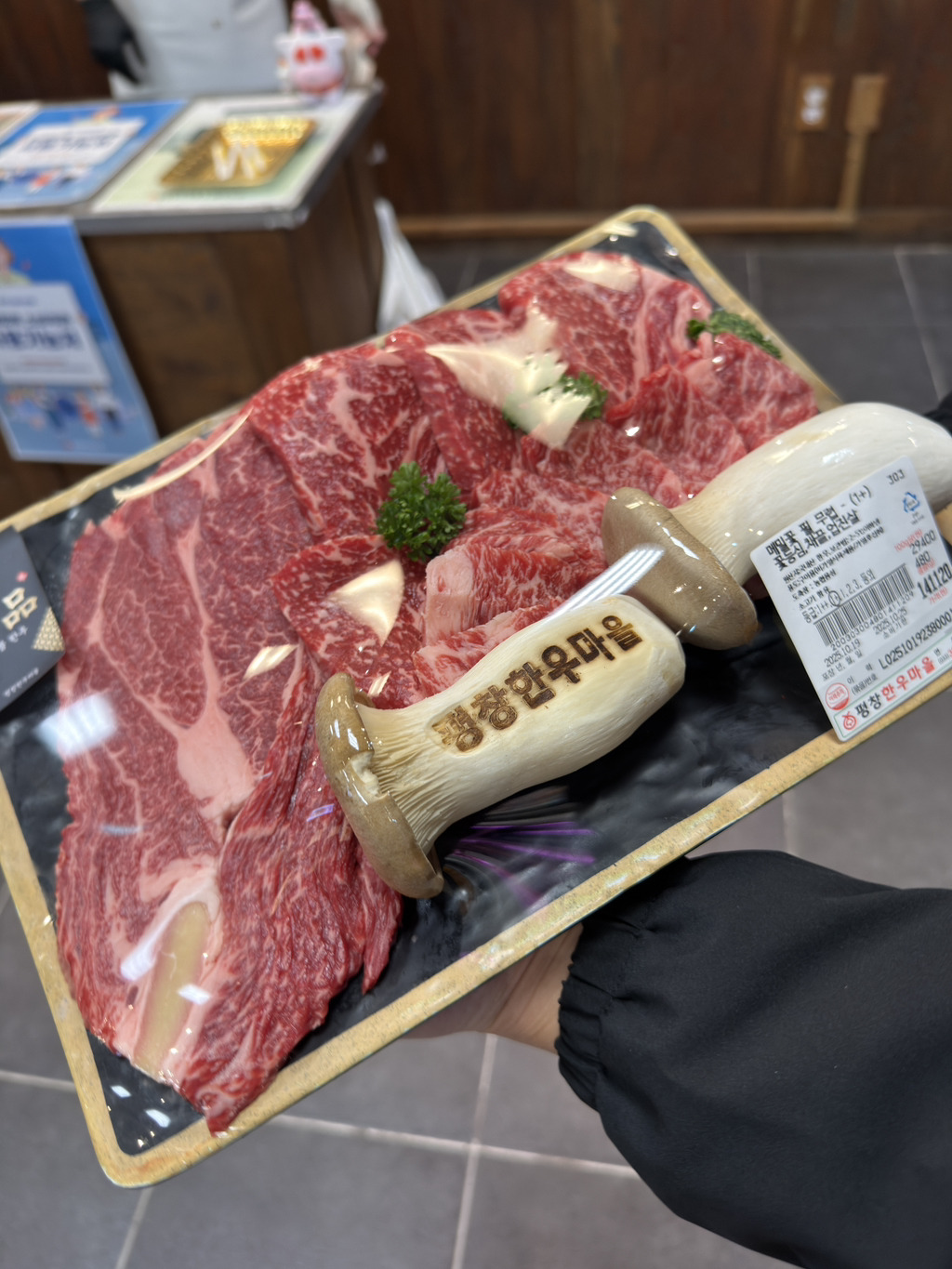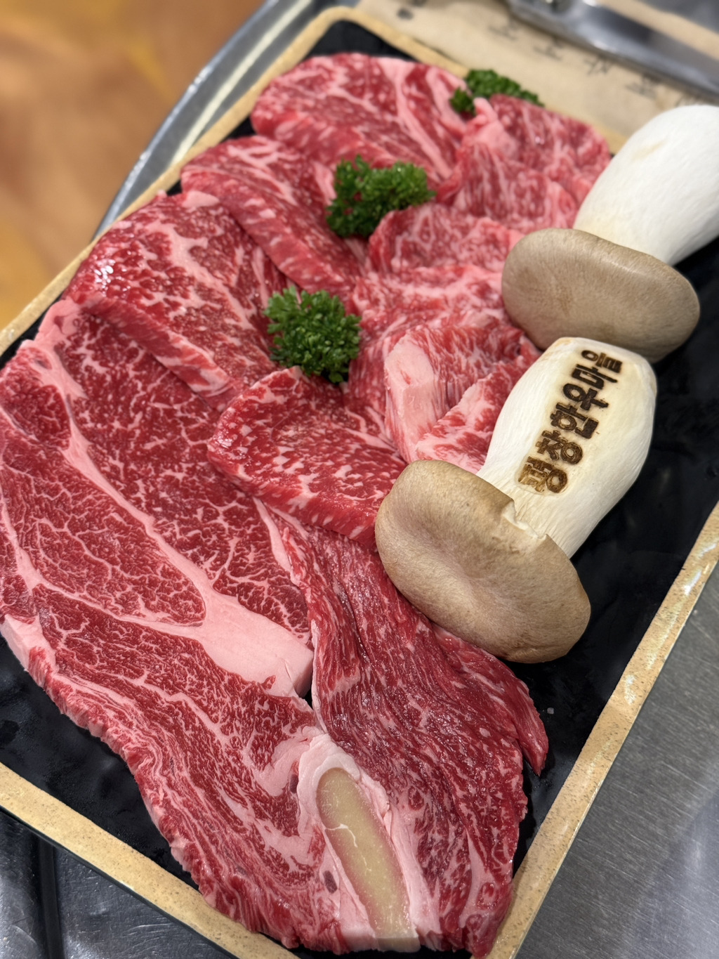 친구와 어쩌다 보니 강원도로 1박 2일 등산여행을 떠나게 됐다. 등산은 다음 날이니까 첫날 저녁은 무조건 제대로 챙겨야 한다는 생각에 평창에서 한우를 먹기로 했다. 평창에는 한우집이 진짜 많아서 어디를 가야 하나 고민하고 했는데 친구가 보내준 후기 보고 이곳으로 가기로 했다. 나혼산에서 전현무가 한우먹방을 한 곳이라고 했지만 (사실 나는 나혼산을 잘 안 봐서 몰랐지만..)