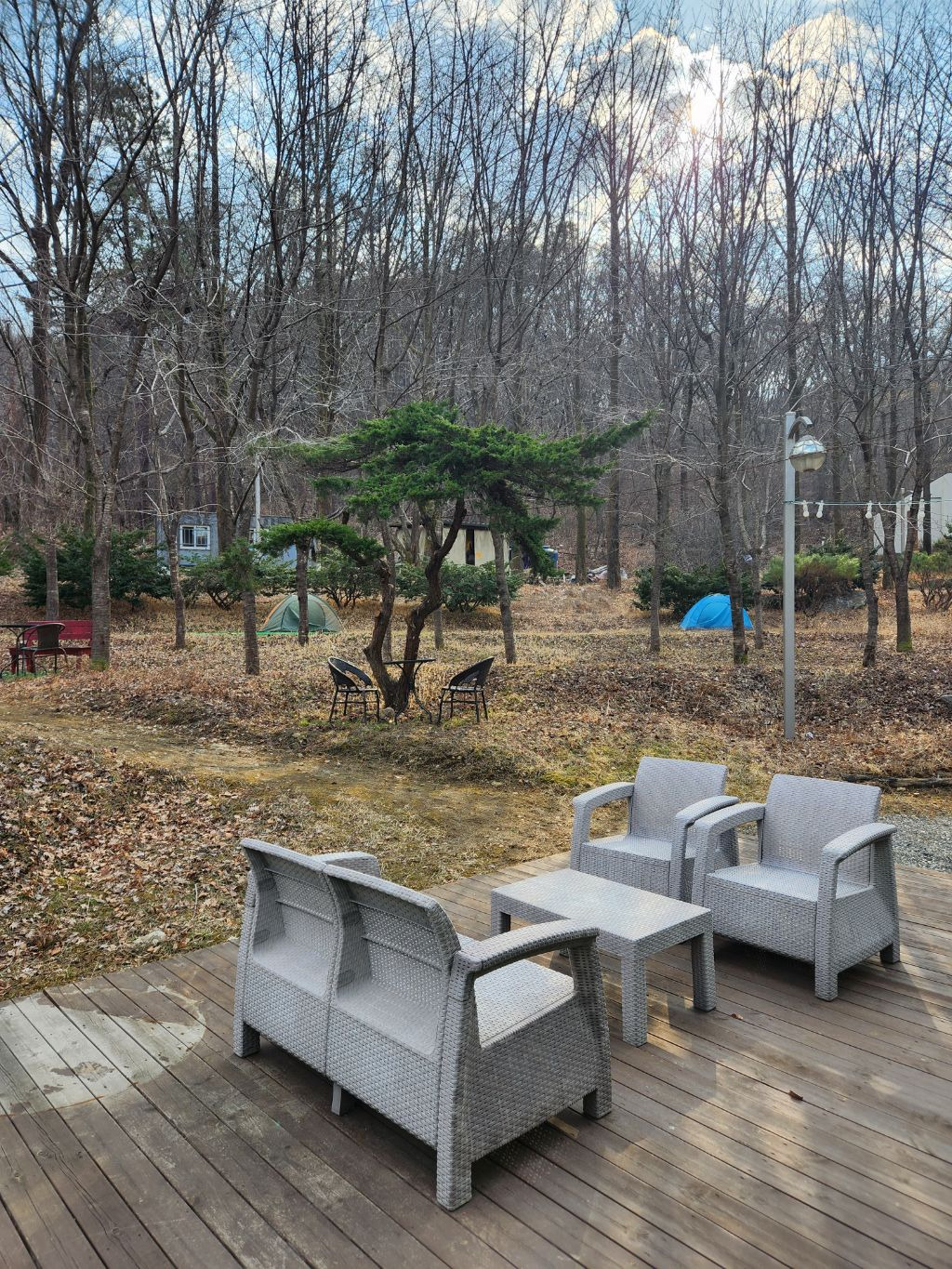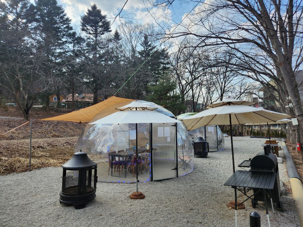 숲속에 온 듯한 야외 공간에 원형돔텐트, 화로대까지 있는 용인바베큐맛집