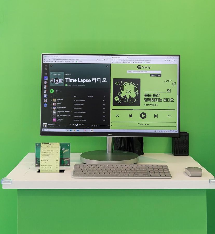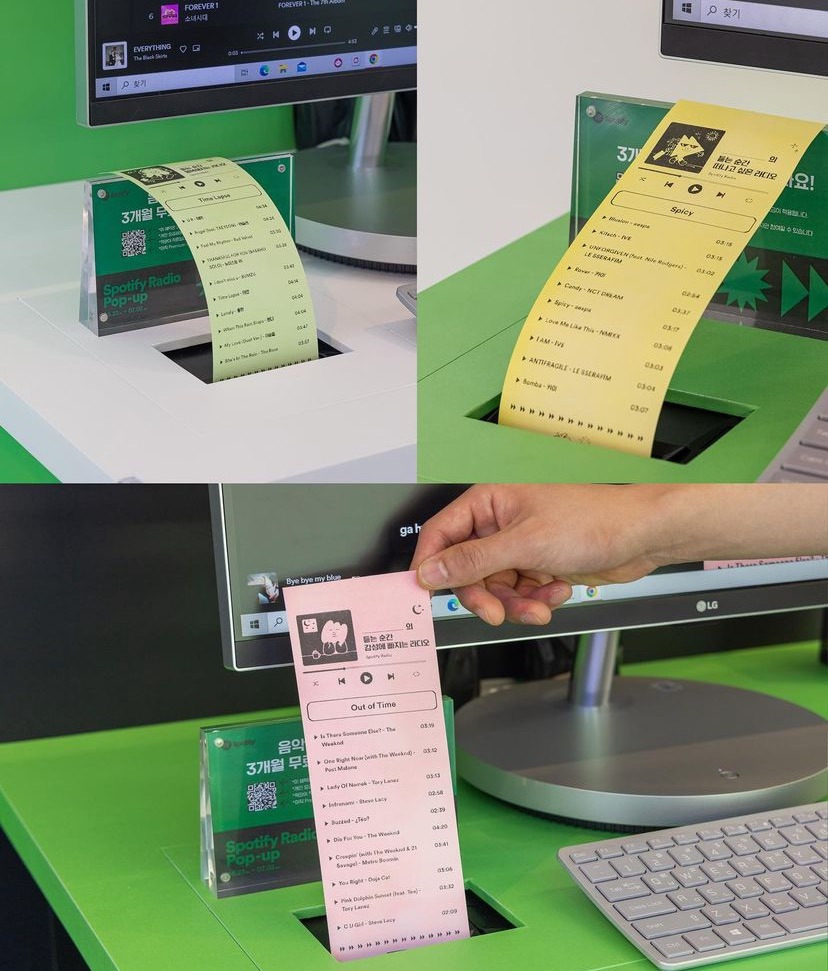 스포티파이 라디오 팝업에서는 나만의 음악 취향을 담은 플레이리스트 영수증 만들기와 테마별 좋아하는 노래를 고르고 알고리즘을 경험할 수 있는 스탠딩 청음존, 나만의 이니셜로 만드는 키링 제작존, 스포티파이 라디오와 함께 한 아티스트 DJ들의 친필 사인, 촬영 소품이 전시된 DJ 부스 공간까지 다양한 현장 이벤트와 즐길 거리가 준비되어 있다고 합니다🎶
