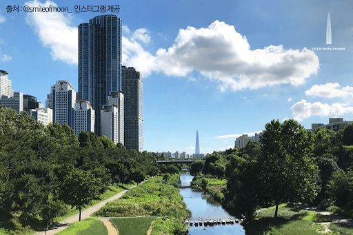 타워팰리스 쪽 고층이 빌딩섬같이 보이는게 유니크하고 양재천 끝으로 롯데월드타워 보이는것도 좋아 ㅋㅋㅋ