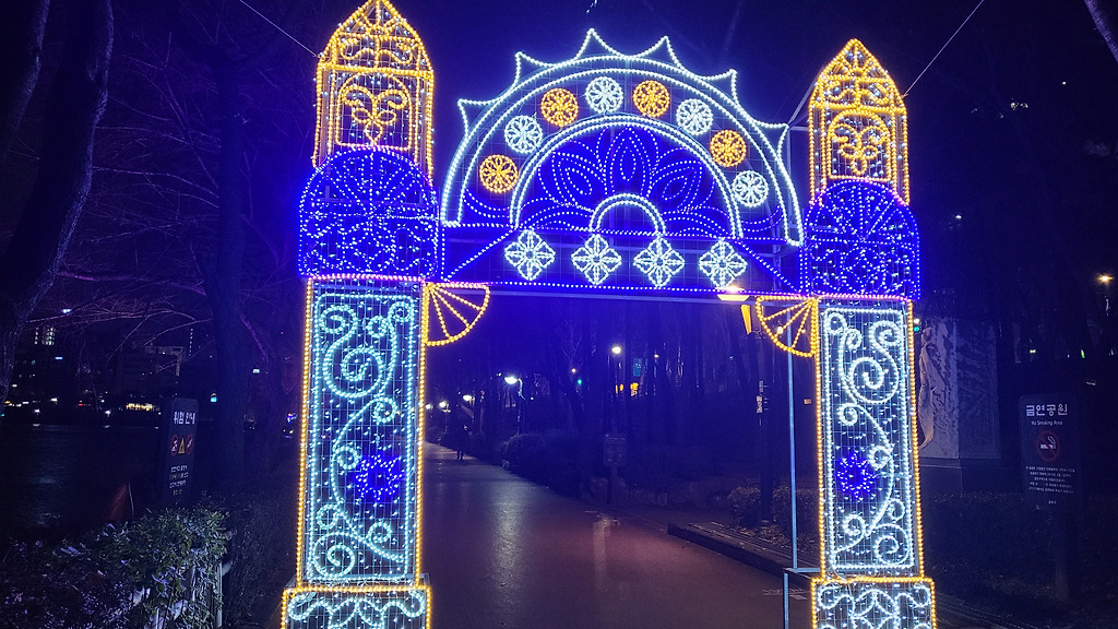 루미나리에는 6시 돼야 불 들어와요.