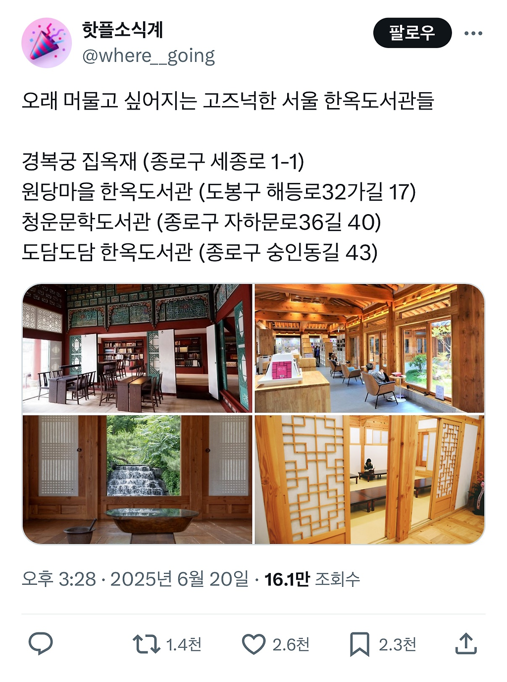 오래 머물고 싶어지는 고즈넉한 서울 한옥도서관들