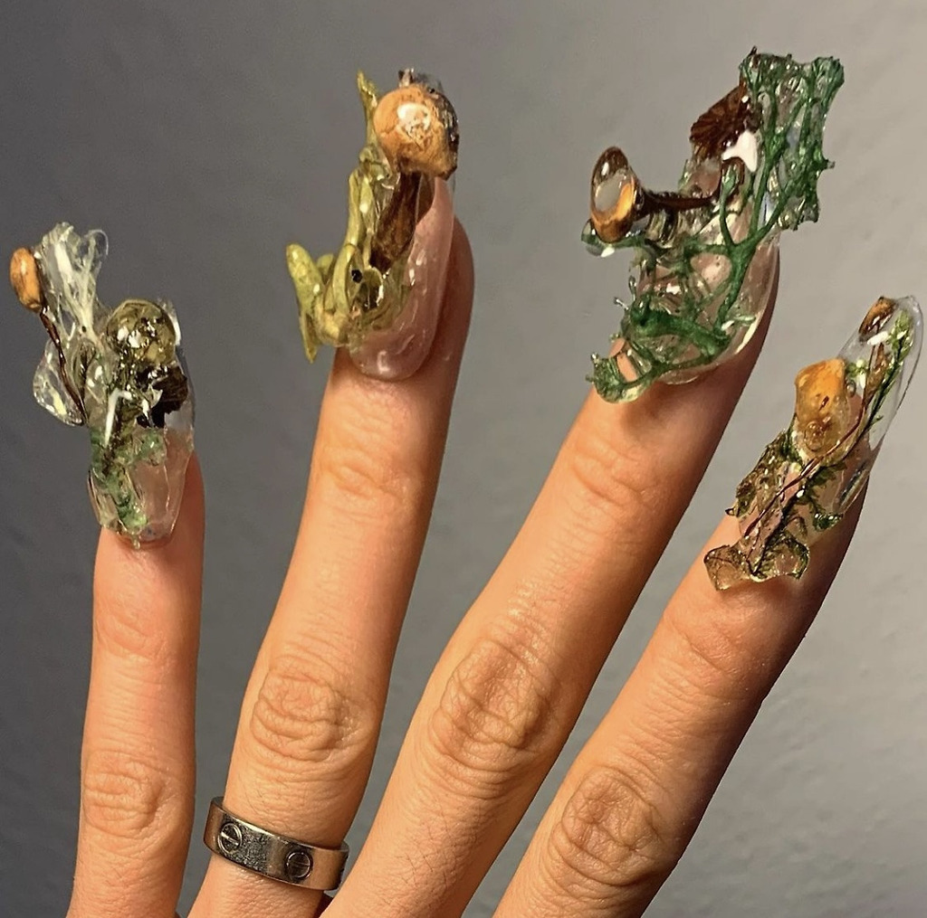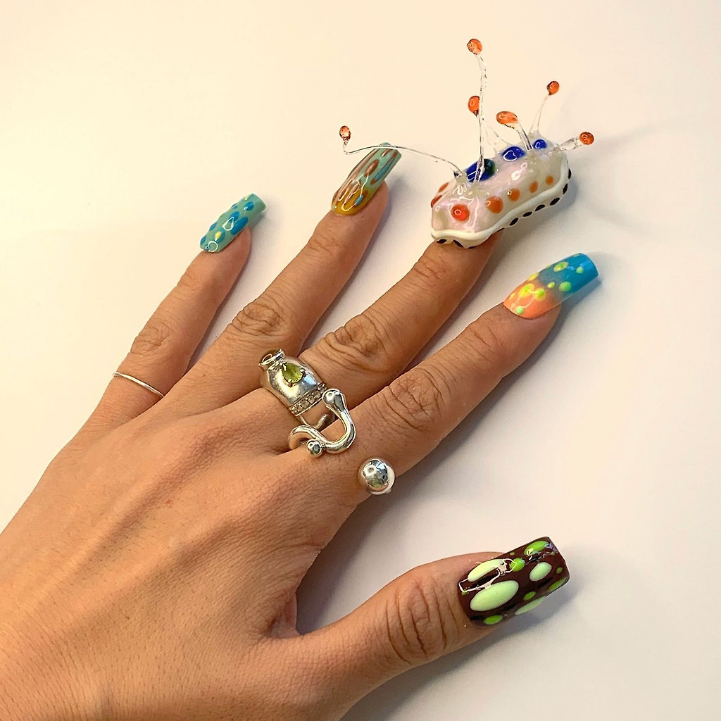 예쁜 네일 아니고 화보용 아티스틱한 네일 위주로 함(주로 해양 생물들에게서 영감을 얻는다고 함)