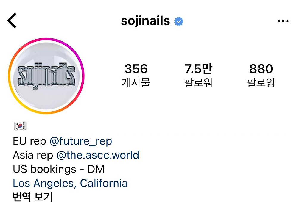 소진 오킴 카다시안, 카일리 제너, 릴 나스 엑스, 빌리 아일리시 등등 요새 핫한 헐리웃들이 엄청 찾는 네일 아티스트라고 함