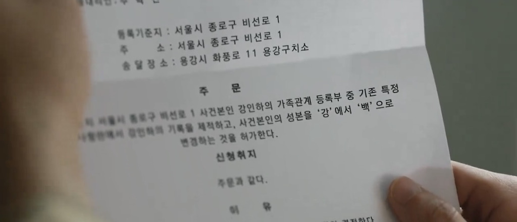 강인하에서 백인하로 아버지에게 버림을 받게 되고 법정에서 독백으로 말하는 인하