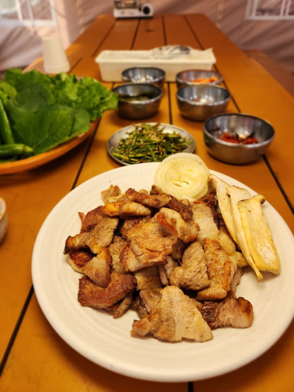 장소명 : 에스테라고주소 : 경기도 용인시 수지구 동천로 233-2 에스테라고메뉴 : 강원도 횡성 목살/삼겹살 바베큐전화번호 : 031-276-5522영업시간 : 매일 10:00 ~ 20:30 (매주 월요일 휴무)주차 : 동시주차 30대 가능