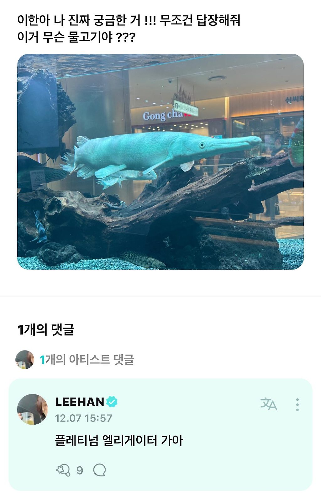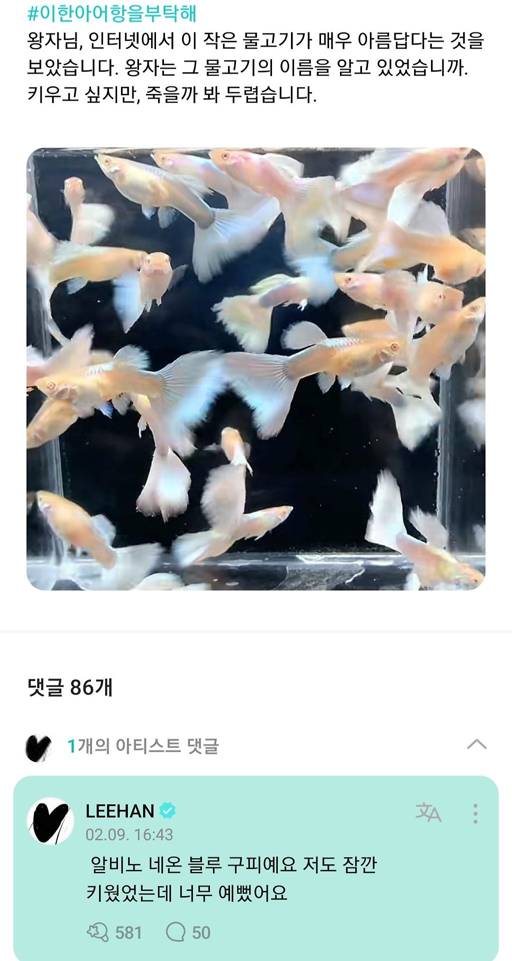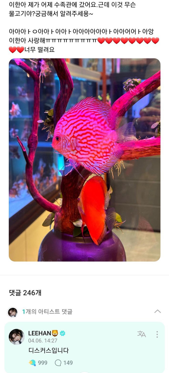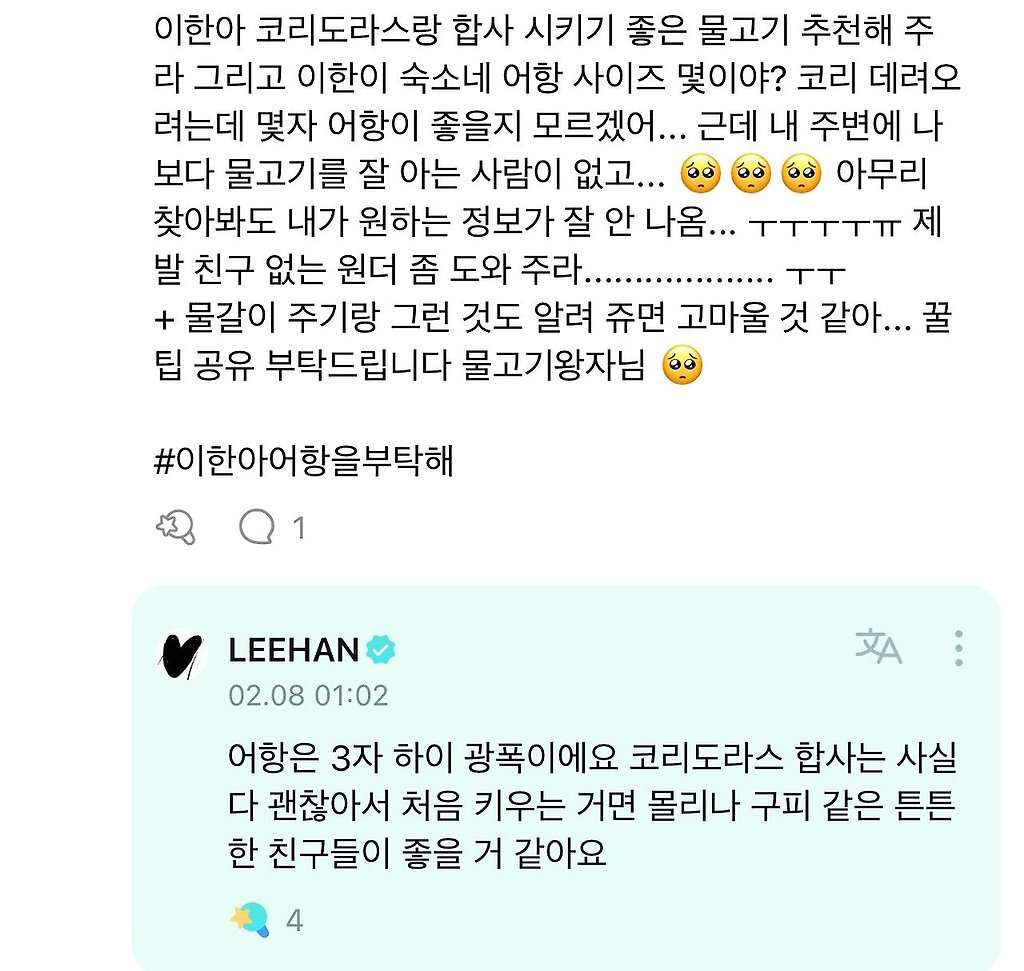 위버스에 해시태그 #이한아어항을부탁해 로 물어보면