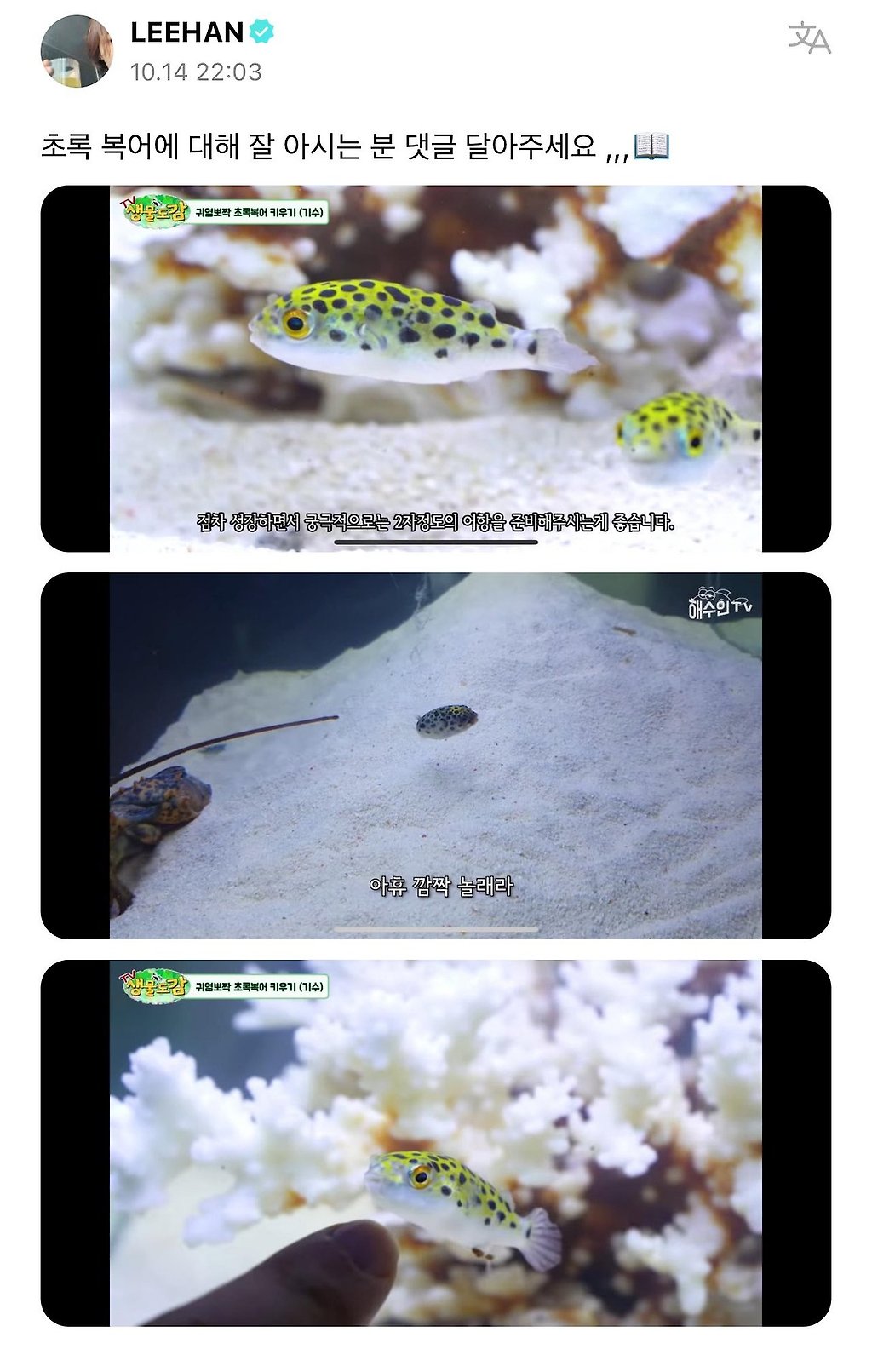키우기 전에 해수인티비와 티비생물도감으로 물고기 공부하는 아이돌…