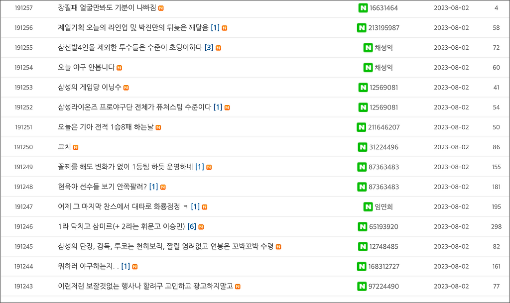 가끔 삼성라이온즈 공식홈 > 사자후 게시판을 들어가보는데... 역시나.. 불펜투수랑 선수기용에 대한 불만이 가득하다.. 삼성이 이기려면 선발이 무조건 7회까지 던지고, 그날 공좋은 불펜들을 총동원해서 8회를 막아내고, 9회를 오승환이 책임지는 시스템이어야 한다. 그외에는 방법이 없당..ㅠ
