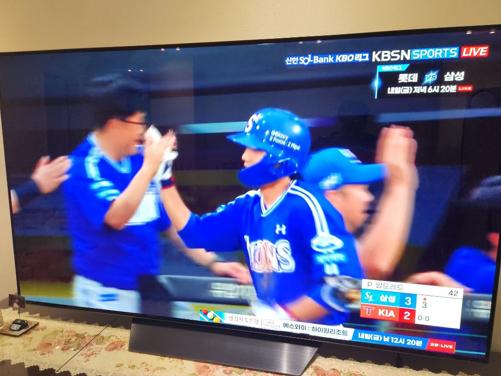 노란색 폴대 가운데를 그대로 강타하는 정말 큰 홈런이 나왔다. 오늘 코너가 좀 불안해서 기분이 그랬는데 바로 역전을 시켜 주네😀😀😀