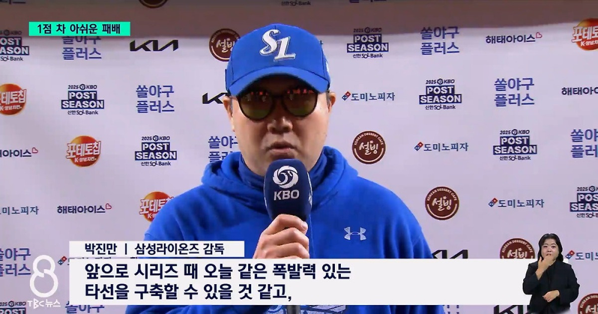 [앵커] 프로야구 삼성라이온즈가 오늘 대전에서 열린 한화와의 플레이오프 1차전에서 한 점 차로 아쉽게 패했습니다. 피말리는 난타전을 펼치며 경기가 끝나는 순간까지 상대를 추격했지만 경
