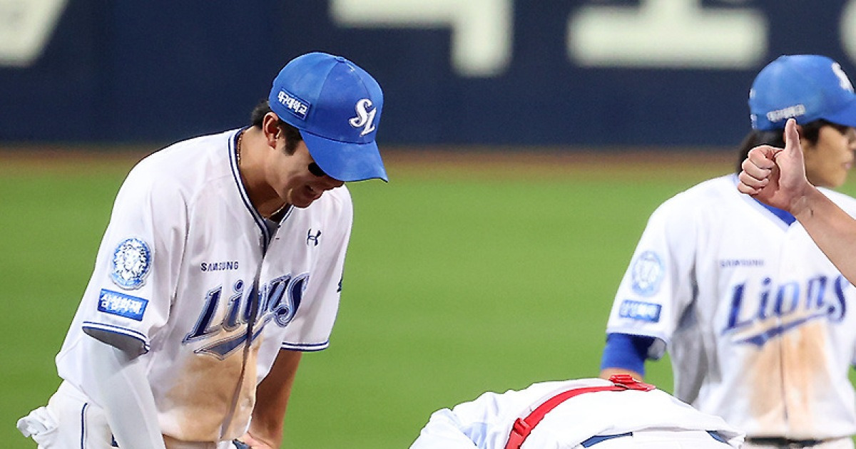 [스포티비뉴스=대구, 곽혜미 기자] 18살 차 대선배가 먼저 허리를 숙였다. 삼성 베테랑 포수 강민호가 결정적 홈런을 터뜨린 김영웅에게 90도 인사를 했다. 2025 신한 SOL뱅크 KBO 포스트시즌 삼성과