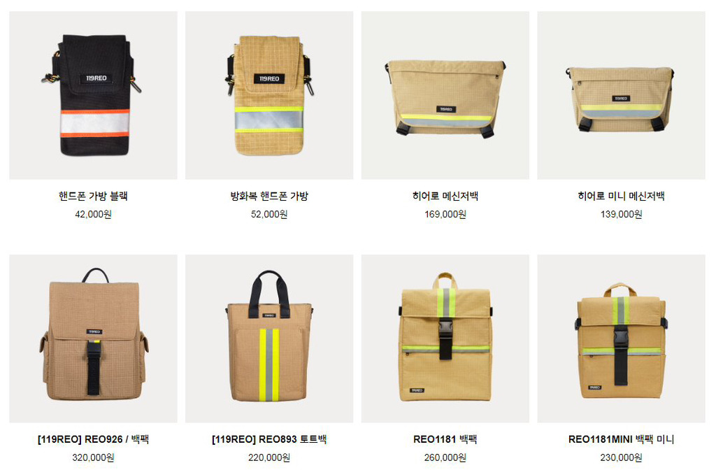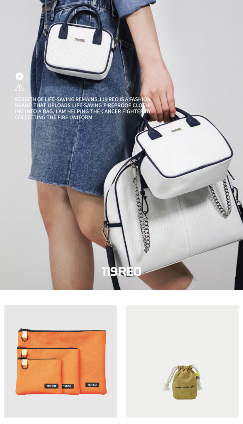 사용하지 못하게 된 소방복을 재사용해 만드는데심지어 수익금으로 암투병 하는 소방관들을 돕는대일단 장바구니 쟁이는중
