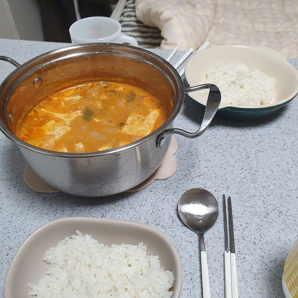 햄 으깬거랑 감자넣고 푹푹 끓이니까 완전 밥도둑이야ㅠㅡㅠ