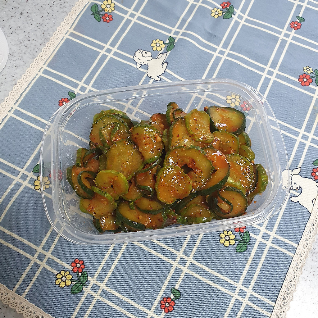 오이무침, 두부조림, 돼지고기 김치볶음.