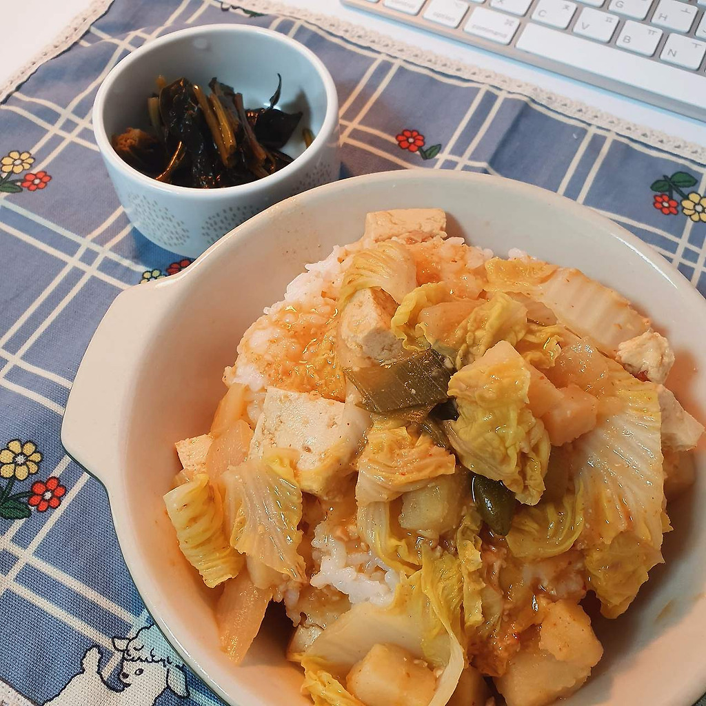 술찜해먹고 남은 배추 된장찌개에 넣고 팔팔끓였더니