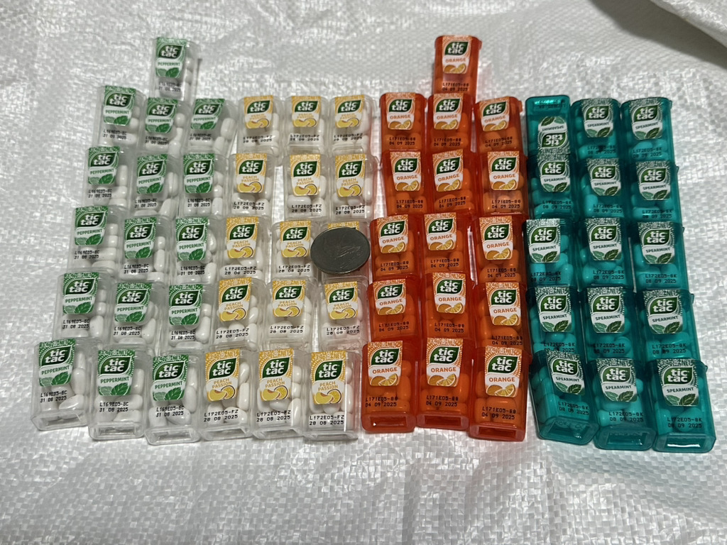 tictac mini 62개 들은거 배송비 포함 2만원 안되서 사봄.네0버 쇼핑에서 지난주 일요일에 구매했고 어제 우체국 택배로 도착함.통 크기가 좀 귀엽다.비타민(얼0이브)이 꽤 큰데 2알까지는 들어갈 듯.크기 비교용으로 500원짜리 동전 올리고 사진 찍었어.