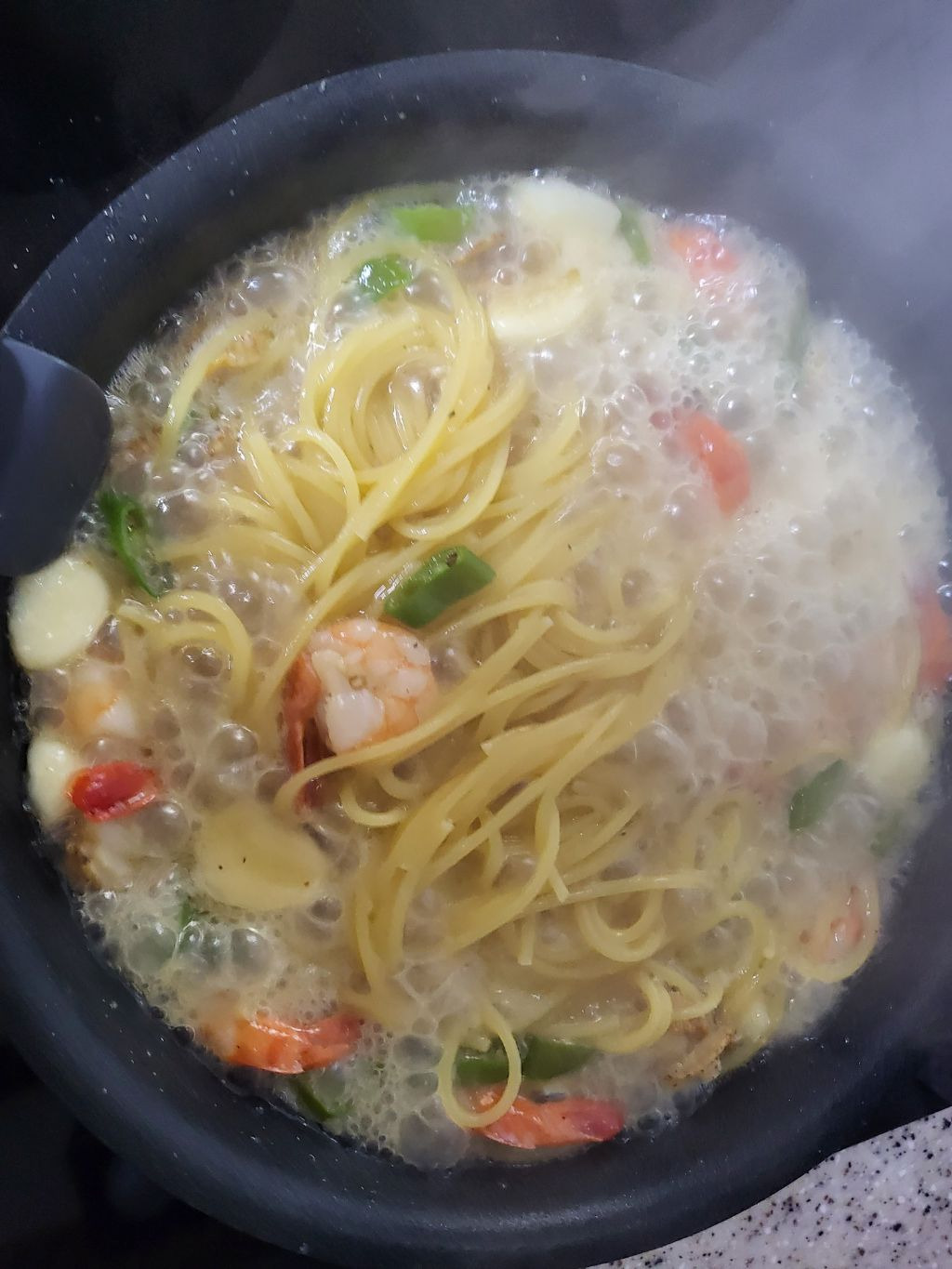 아점으로 해산물 가득 오일 파스타