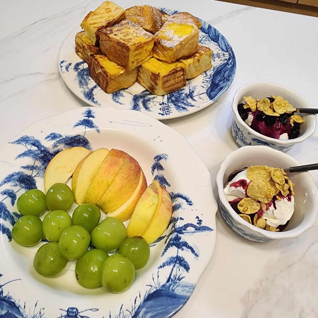 먹어야쥬~~남은 통식빵 잘라 토스트하고,과일 남은거 해결~그릭요거트 만들어놓은거 한스쿱떠서 콩포트 원하는거 섞어서 커피랑~점심은 또 뭐해먹나 생각이 드는건 주부라서 그런거쥬?즐거운 주말보내유~~