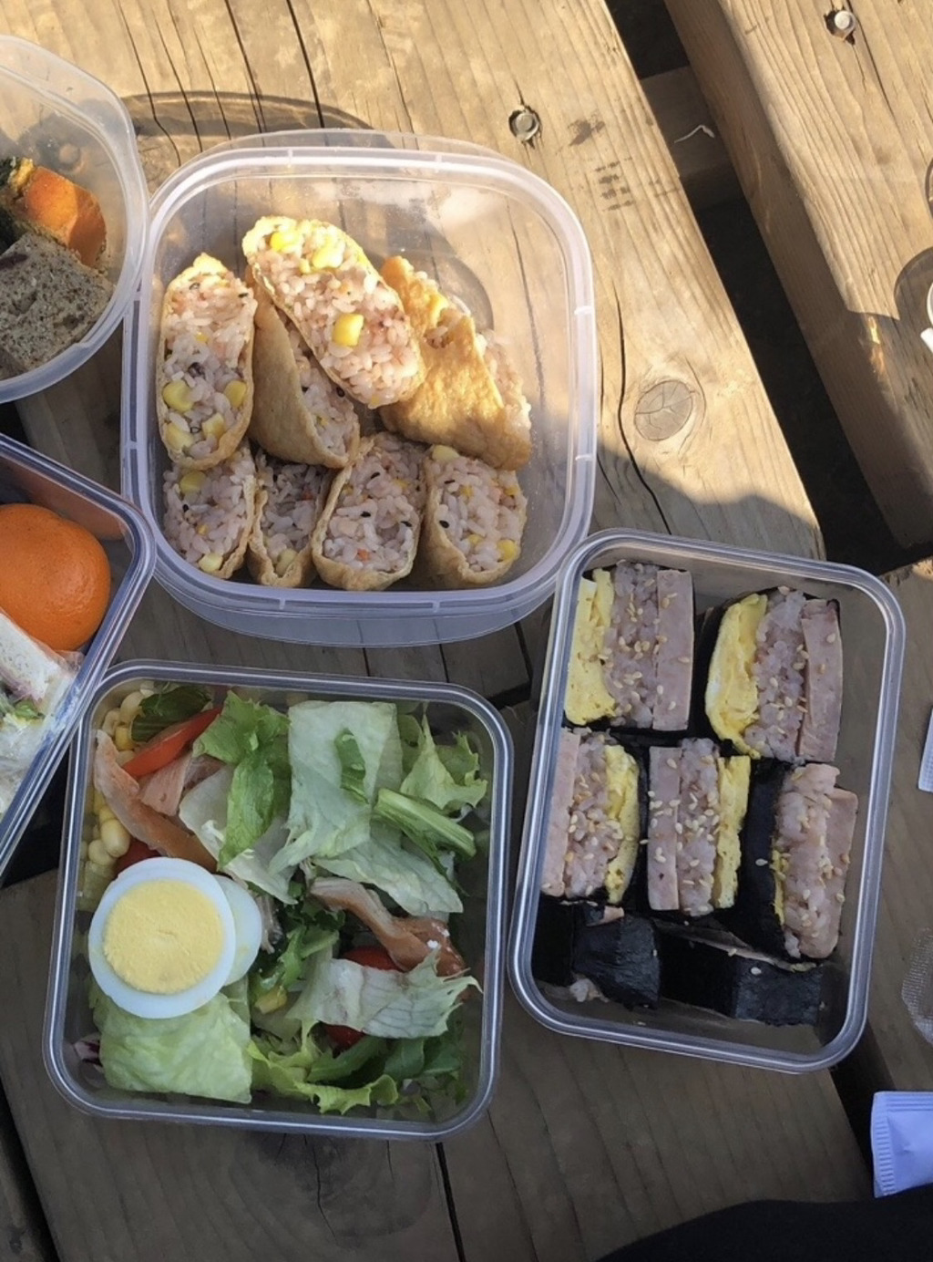 등산갔을때 만든 유부초밥과 무스비 도시락