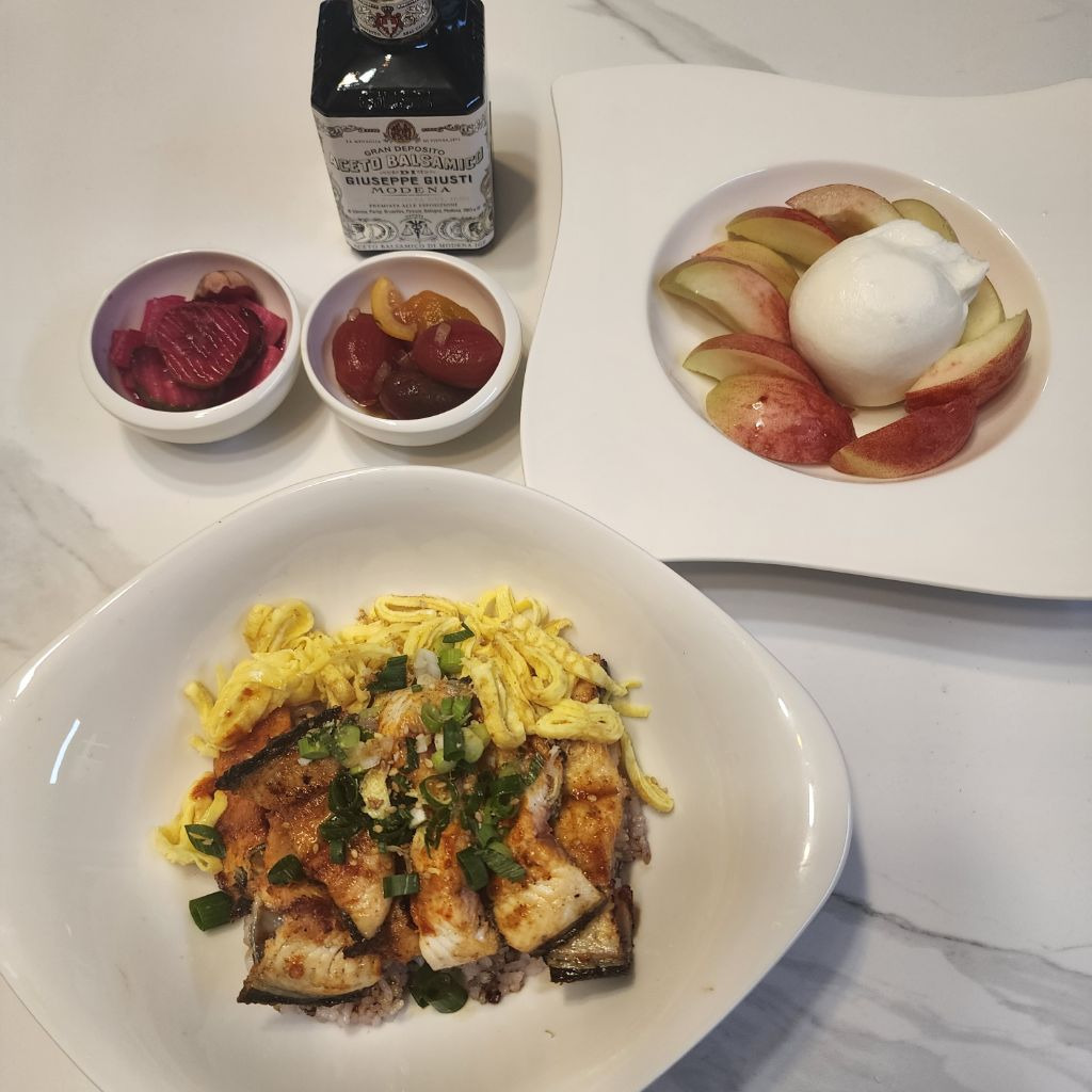 날이 더워져서 공부하는 딸을 위한 보양식을 만들어봤어요. 장어덮밥!!!신비복숭아 산김에 부라타치즈 하나 올려서 샐러드도 만들었는데 아삭하니 맛있네요.즐거운 저녁시간보내요~