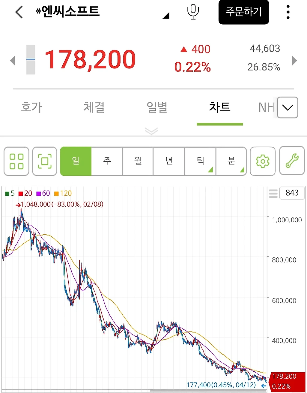 최근에 18만원선 뚫려서 최고 저점 나날이 갱신 중이라네..