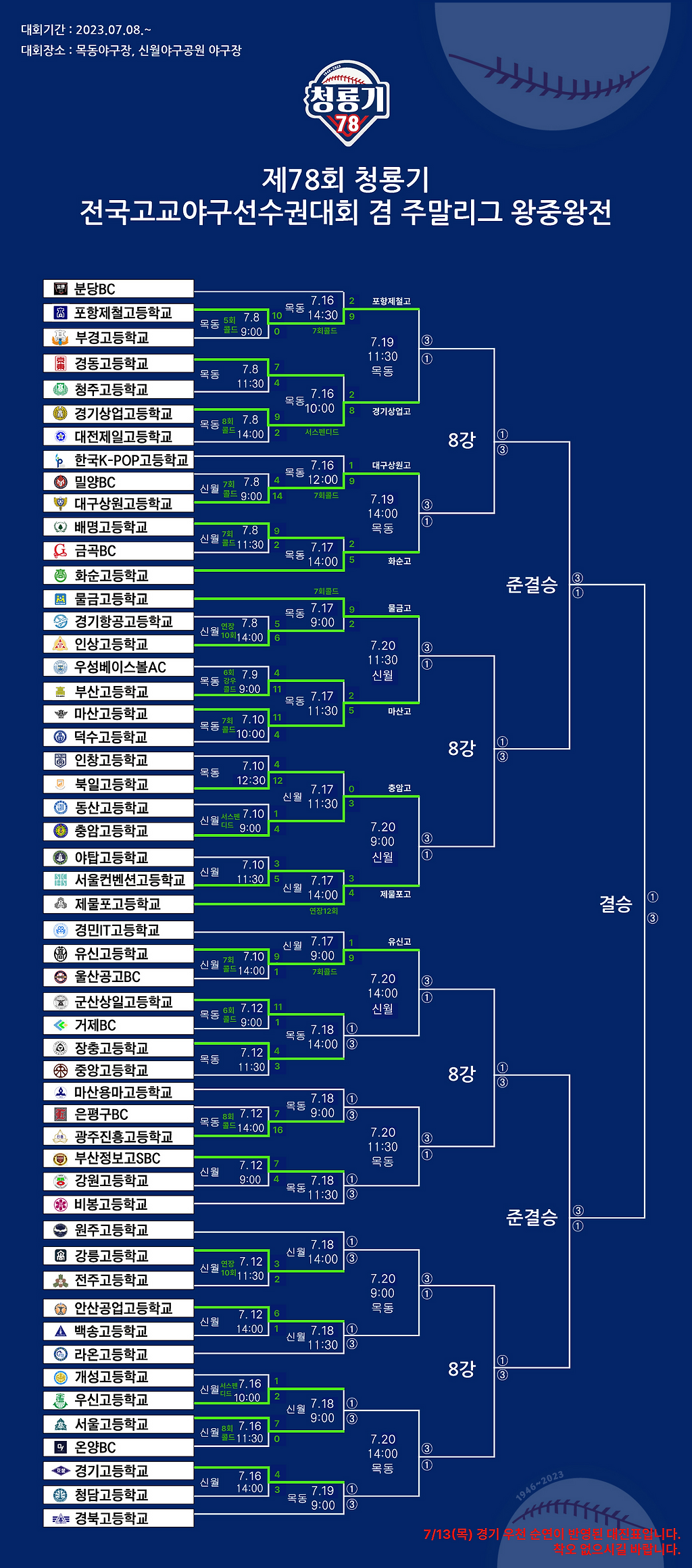 청룡기 전국고교야구선수권대회 7/8 경기 결과 및 대진표 현황