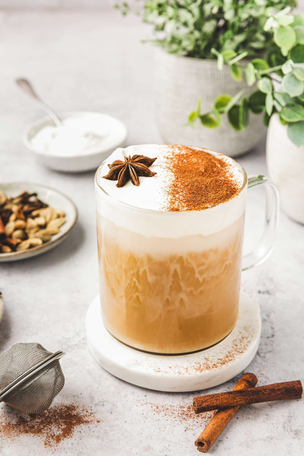 차이 티 라떼에 시럽 추가한 다음 컨디먼트 바 가서 시나몬 파우더 푹푹 올려 먹으면 됨