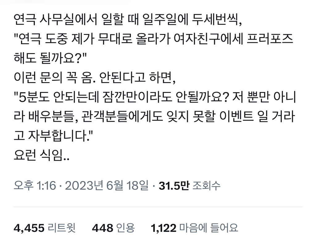 연극이나 콘서트에서 프로포즈 하려는 이유 아는사람?