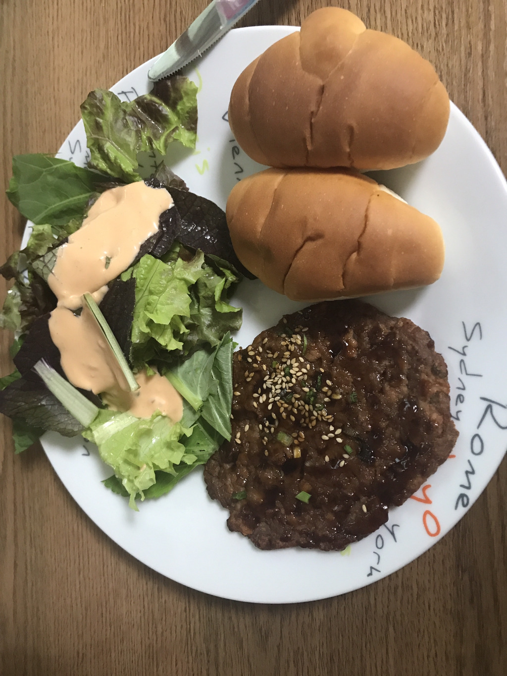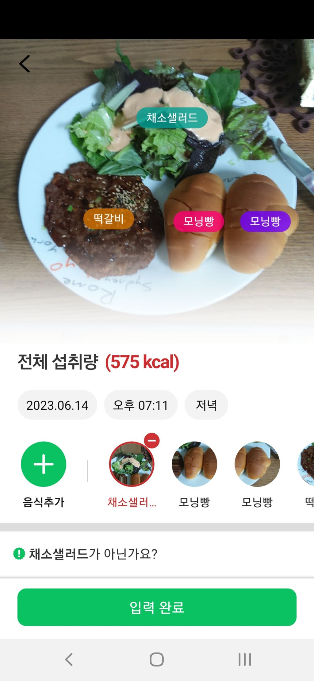 채소 샐러드 모닝빵 떡갈비 575 칼로리