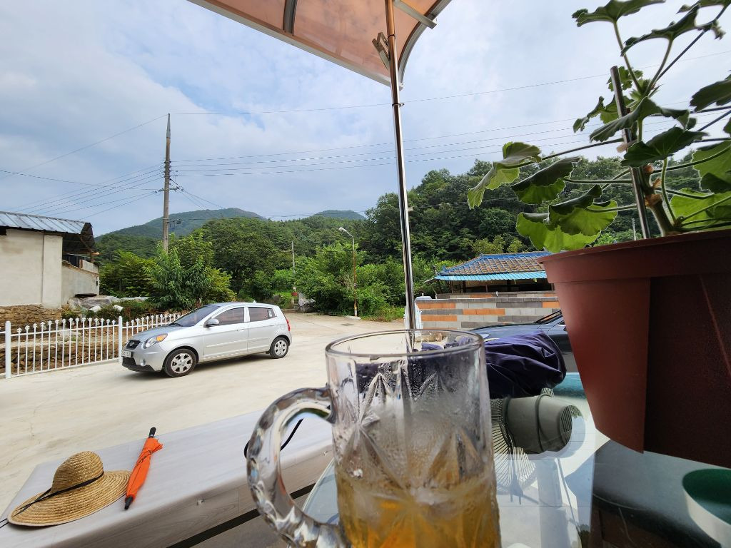 아는 사람이 시골에 집을 짓고 살고 있어서 처음으로 와봤어요. 마당에 있는 테이블에 앉아 커피를 마시면서 바라보는 풍경은 녹색 천지네요.시골에서 산다는게 좋은 점도 있고 나쁜 점도 있을텐데 나이가 들어가면서 점점 더 시골에 집을 짓고 사는 모습이 좋게 느껴집니다.이렇게 꿈을 꾸던 삶을 실천하는 분들이 대단하게 느껴집니다.