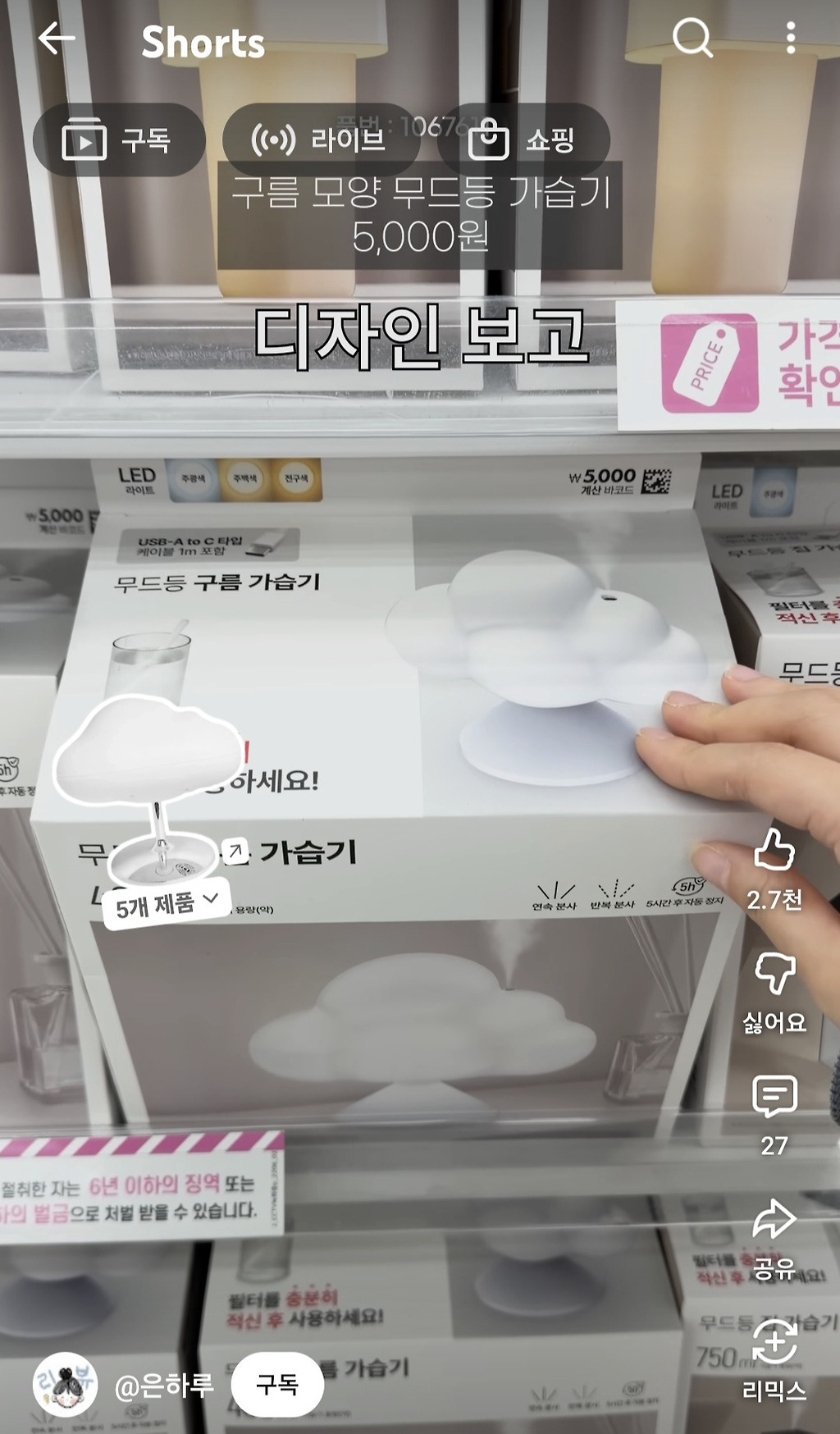 요즘 구름 가습기 많이 보이길래 찾아보다가 다이소 신상 발견