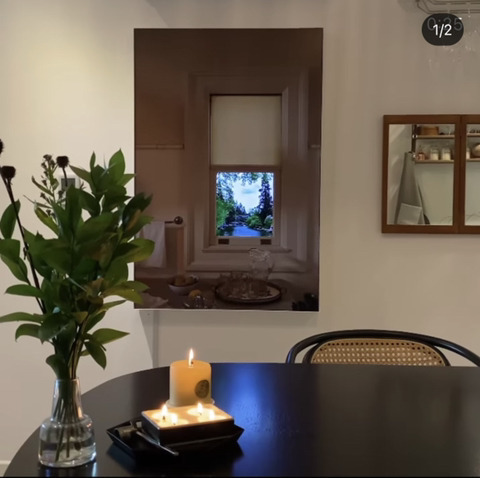 후 드디어 거실을 벗어나 현관으로 가볼게! 현관에 있는 이 거울은 Glas Italia 의 Shimmer Specchi 라는 제품이야. 글라스 이탈리아는 유리로 된 가구를 제작하는 브랜드인데 디자인이 특이한게 참 많아서 한번 보면 머리를 떠나지 않는거 같아. 거울보다는 아마 둥글둥글한 커피테이블로 여시들에게 더 잘 알려져 있을거 같아. Specchi 라인은 조명과 각도에 따라 색이 변해서 해가 떠 있는 시간동안 계속해서 변하는 색과 반사된 빛을 보는게 하나의 재미라고 하네. Specchi 거울 또한 다양한 사이즈로 나오고 있는데 사진속 제품은 제일 큰 180 x 120cm 제품이고 가격은 약 600-700만으로 알고 있어