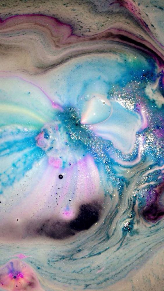 각각에서 서로 다른 색깔의 거품이나 방울, 또는 증기가