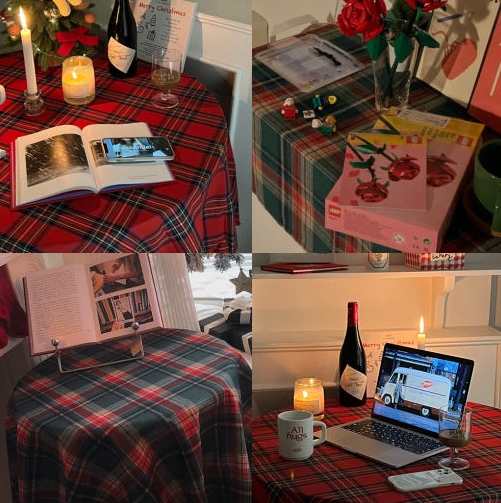 크리스마스 느낌 물씬 나는 빨간색 테이블보 하나로 완성도 UP!