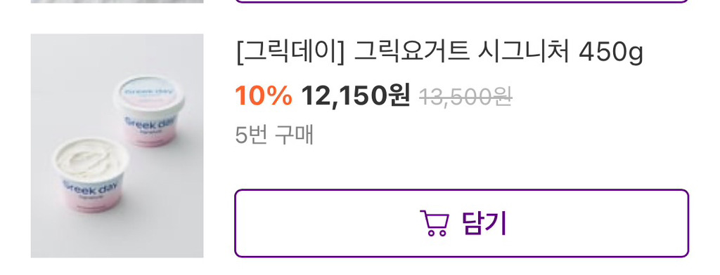 나는 그릭요거트를 단백질보다는 지방 채우려고 먹는건데 성분 괜찮아서 자주 시켜먹어!