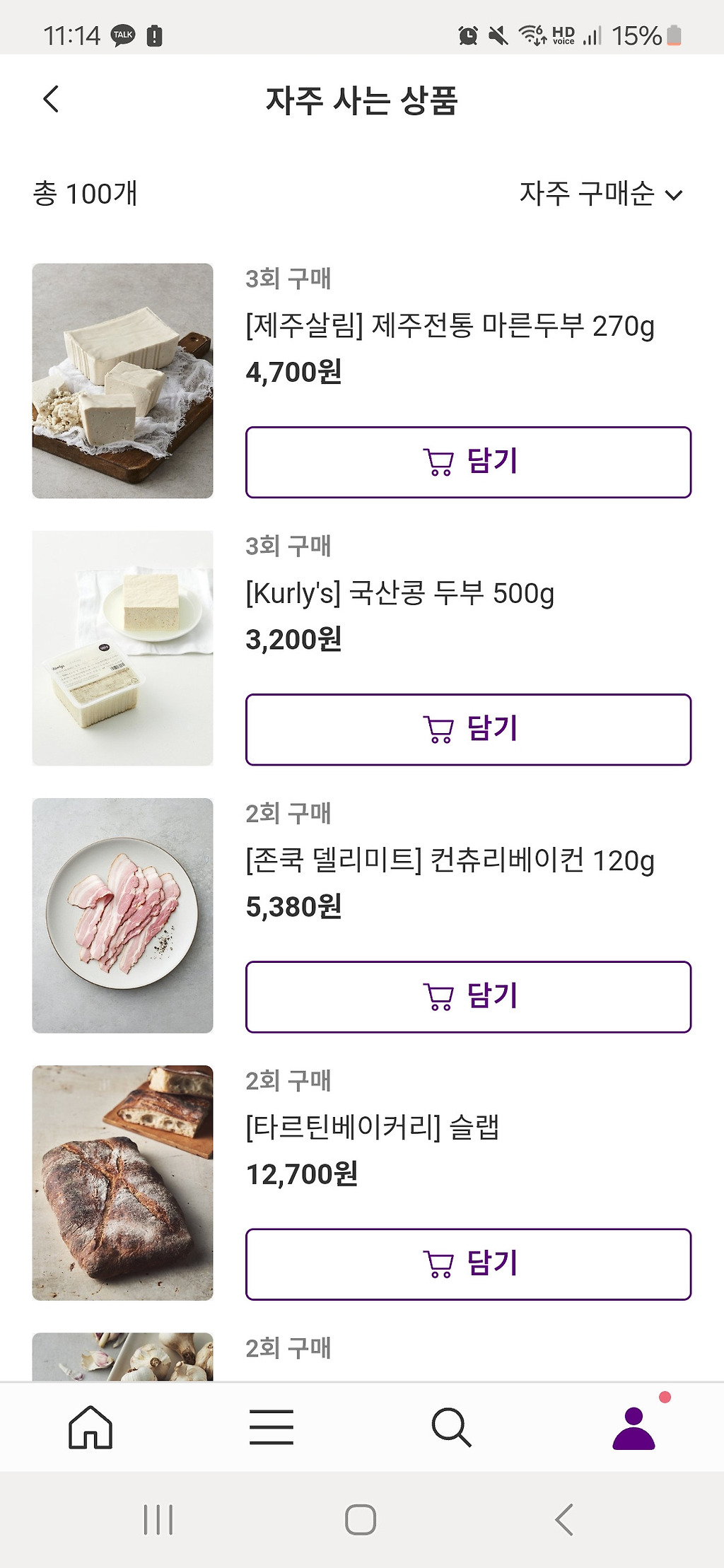 국산콩 두부 비싸고 대용량 잘없는데 컬리는 500g짜리라서 좋아!